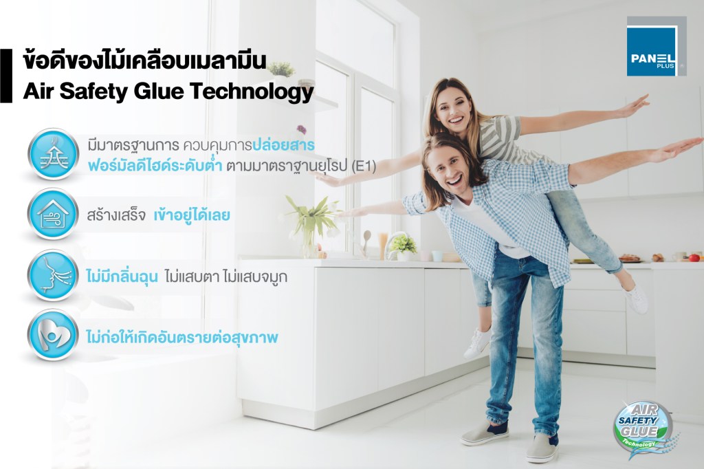 ปัจจุบันพาเนล พลัส จึงมีการคิดค้นและพัฒนาผลิตภัณฑ์เหล่านี้โดยใช้กาวที่มี Air Safety Glue Technology ที่มีมาตรฐานการควบคุมการปล่อยสารฟอร์มัลดีไฮด์ระดับต่ำ ตามมาตราฐานยุโรป (E1) ซึ่งเป็นมาตรฐานสากลที่ปลอดภัยเนื่องจากมีการจำกัดปริมาณสารระเหยฟอร์มัลดีไฮด์ ไม่เกิน 1.5 มิลลิกรัมต่อลิตร ไม่ก่อให้เกิดอันตรายต่อสุขภาพและระบบทางเดินหายใจ สามารถทำให้เราใช้ชีวิตภายในบ้านได้อย่างมั่นใจและปลอดภัยยิ่งขึ้น