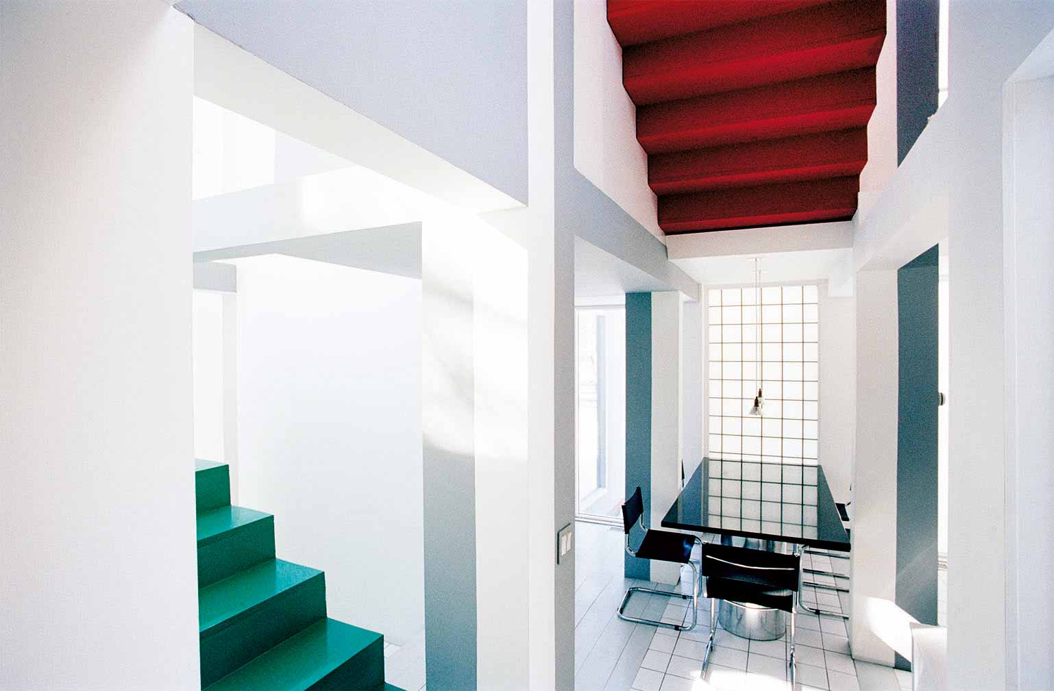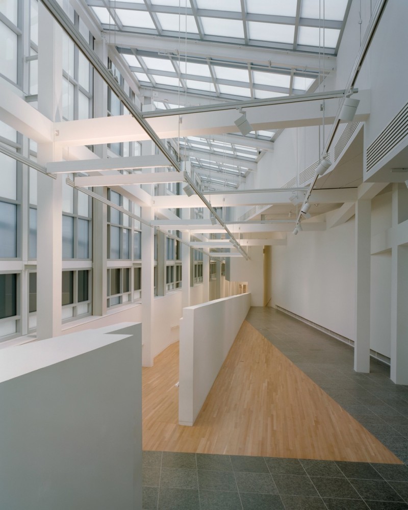พื้นที่ภายในเกิดจากที่ว่างในกริดซึ่งสอดแทรกระหว่างอาคารเก่าและใหม่ เมื่อมองจากภายนอกจะพบว่าโครงสร้างกริดสีขาวทำหน้าที่เป็นทางเดินเพื่อแยกอาคารเก่าและใหม่ออกจากกัน แต่หากได้เดินเข้ามาภายในจะพบว่ากริดมีหน้าที่เชื่อมพื้นที่ทั้ง 2 อาคารเข้าด้วยกัน ซึ่งนี่เป็นการสร้างความรู้สึกคลุมเครือ ไม่ชัดเจนให้กับผู้ใช้งานนี่เอง