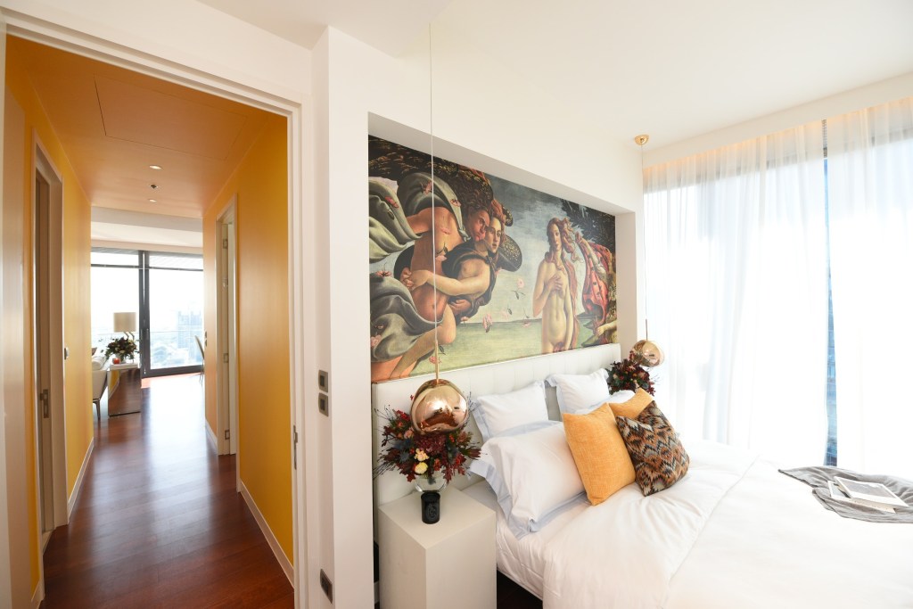 ส่วนบริเวณห้องพักก็มีให้เลือกหลายรูปแบบตามการใช้งาน โดยมีตั้งแต่ 1 ห้องนอน 2 ห้องนอน หรือเป็นห้องขนาดใหญ่ 3 ห้องนอน 3 ห้องน้ำ ซึ่งเมื่อเดินเข้ามายังบริเวณภายใน บรรยากาศจะค่อนข้างเรียบหรูแต่จะเห็นได้ว่ามีบางจุดถูกตัดด้วยองค์ประกอบบางอย่างที่มีสีสัน ทำให้ได้ความรู้สึกสดใส มีชีวิตชีวา ดูสนุก และแอคทีฟมากขึ้น ซึ่งการออกแบบจะเน้นเลือกใช้วัสดุที่มีคุณภาพสูง ผ่านการเลือกสรรมาอย่างดีทั้งในแง่ของคุณภาพและความสวยงามของงานดีไซน์ เช่น พื้นที่ส่วนครัวใช้หินอ่อน Arabescato Chiaro ซึ่งค่อนข้างเป็นวัสดุที่หายาก พื้นไม้แบบ Engineering Floor ซึ่งหน้าไม้เป็นไม้เนื้อแข็งชนิดเดียวกับที่ใช้ทำเสากระโดงเรือจึงมีคุณสมบัติที่ทนทานต่อความชื้นได้เป็นอย่างดี ส่วนของตกแต่งอื่นๆ ที่เราเห็นทั้งภายในห้องนอนและห้องส่วนกลางอื่นๆ ก็เป็นของจากแบรนด์ตกแต่งระดับโลกที่ทาง Yoo studio คัดสรรมาเป็นอย่างดี เรียกได้ว่าพบรายละเอียดในทุกๆ จุดของโครงการเลยทีเดียว ซึ่งหากใครสนใจก็สามารถจับจองได้แล้วตั้งแต่วันนี้เป็นต้นไป โดยราคาเริ่มต้นอยู่ที่ 18.9 ล้านบาท