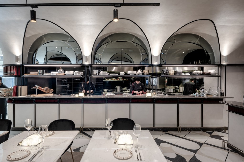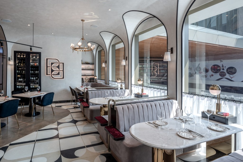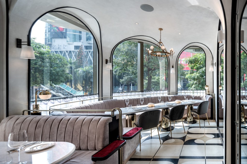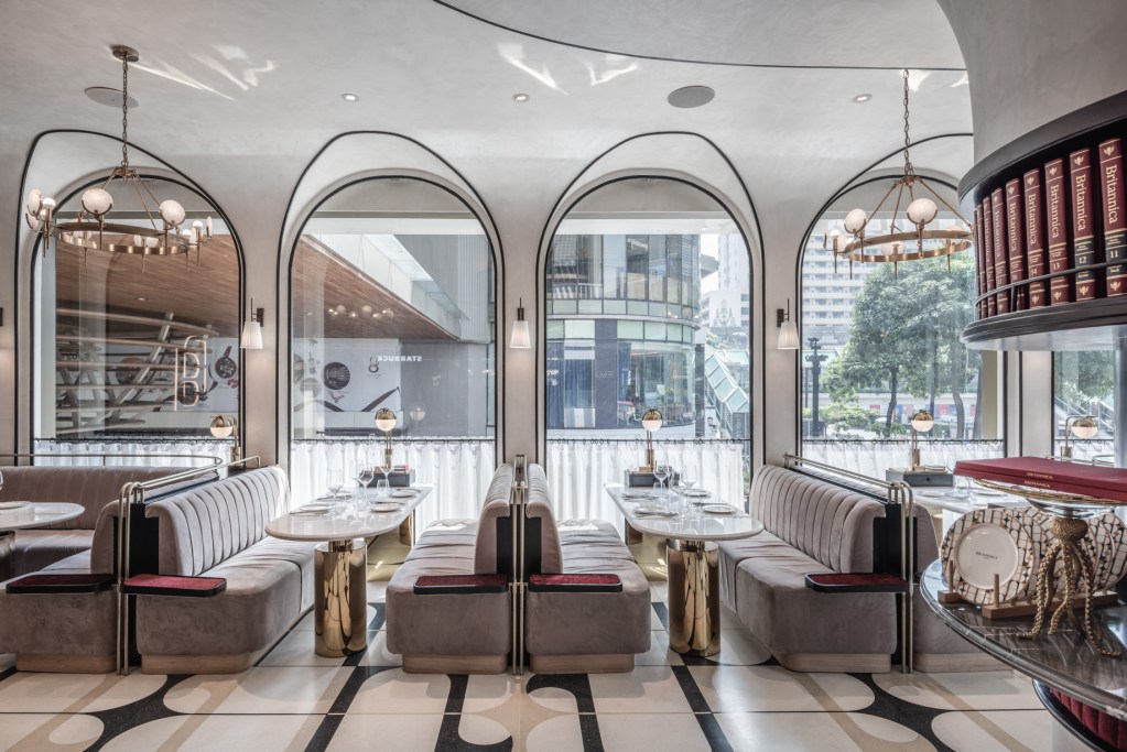 “ร้านนี้ไม่มีประตูร้าน เพราะเราไม่อยากให้รู้สึกว่า Britannica Brasserie เป็นร้านอาหาร fine dining ที่เข้ามาแล้วต้องรู้สึกเกร็งหรือทำตัวไม่ถูก เราอยากสร้างบรรยากาศที่ทำให้ลูกค้าเข้ามาแล้วได้นั่งชิลล์ มี circulation ที่เป็นการไหลเข้ามา แล้ววางสเปซจากประสบการณ์ของผู้ใช้งาน ตั้งแต่เจอเคาน์เตอร์บาร์ด้านหน้า คุณมาซื้อกาแฟ ด้านขวาของคุณมีเชฟกำลังทำขนม คุณได้เห็นและได้กลิ่น พอคุณเดินเข้ามาด้านในก็มีพนักงานเดินเข้ามาสวัสดีทักทาย เราอยากให้เกิดบรรยากาศแบบนั้น เราเลยสร้าง circulation ที่เมื่อเดินเข้ามาแล้ว จะรู้สึกว่ามันไหลเข้ามาเอง”