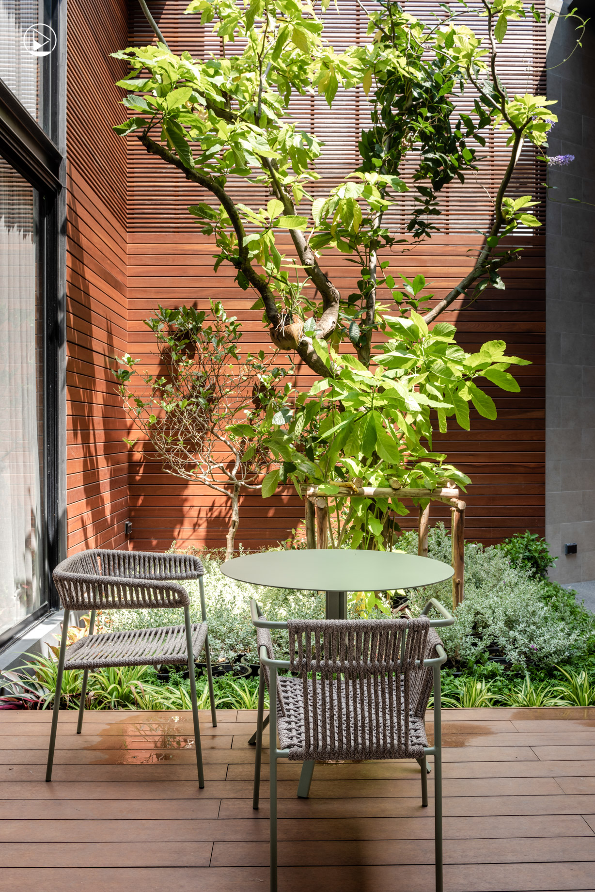 ด้วยขนาดพื้นที่ที่มีจำกัด ประกอบกับความต้องการที่จะอยู่สบายของเจ้าของ ทำให้คุณต้นนำคีย์เวิร์ดของความโปร่ง โล่ง เข้ามาออกแบบ เพื่อทำให้บ้านทำหน้าที่รับลมและแสงธรรมชาติ รวมถึงพื้นที่สีเขียวเข้ามาส่งเสริมให้การอยู่อาศัยนั้นสบายและเหมาะกับการพักผ่อนมากขึ้น และออกแบบพื้นที่บ้านหลังนี้ล้อมไปด้วยชานบ้านที่เชื่อมไปยังบริเวณคอร์ดพื้นที่สีเขียวตรงกลาง และใช้ประตูกระจกที่สามารถเปิดได้ทั้งหมด เพื่อเชื่อมต่อสเปซดึงความเป็นธรรมชาติเข้ามาให้เกิดความโปร่ง โล่งมากที่สุด