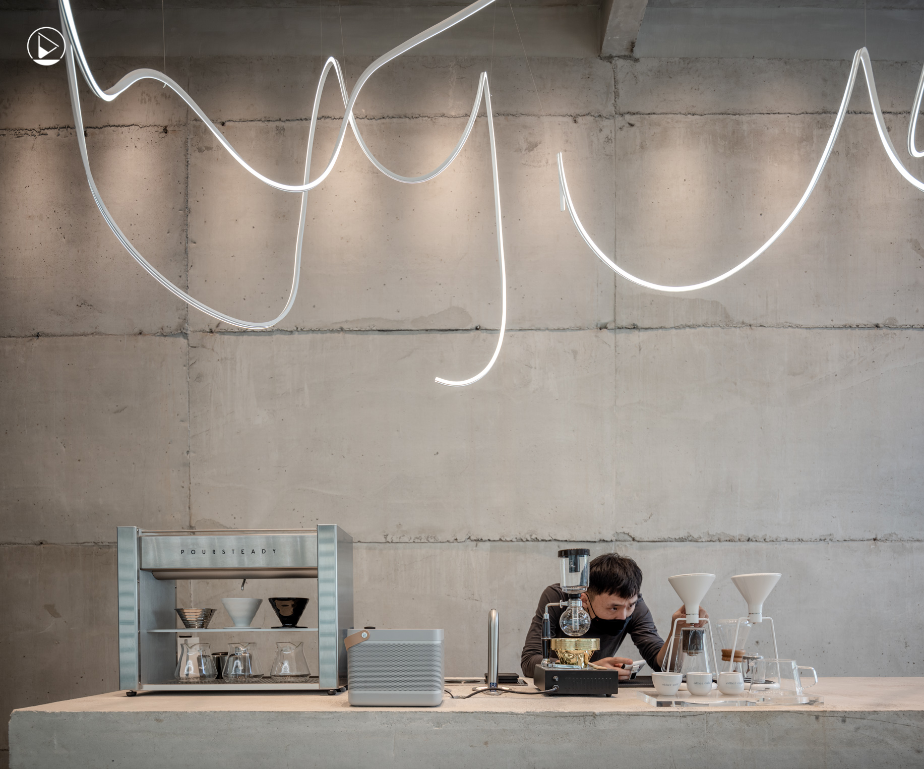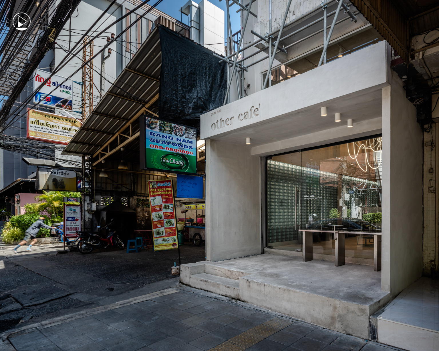 เส้นสายไฟสีขาวที่ขดกันไปมาแบบไม่ตั้งใจ จนดูเหมือนเป็นงานจัดแสดงศิลปะเท่ๆ นำเรามาสู่ร้าน Other Café คาเฟ่เปิดใหม่สไตล์เรียบง่ายในซอยรางน้ำ ซึ่งเดิมทีร้านถูกวางไว้ให้เป็นร้านขายรองเท้าสนีกเกอร์ ก่อนจะถูกปรับเปลี่ยนให้กลายเป็นคาเฟ่ที่จริงจังกับเรื่องกาแฟมากขึ้น