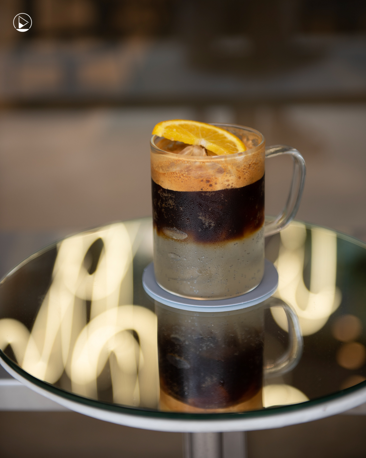 “ถ้าตั้งเครื่องดื่มบนโต๊ะ แล้วถ่ายรูป จะเห็นเส้นสายของไฟ LED ที่สะท้อนลงมาบนกระจก ซึ่งเหมือนเป็นการนำสิ่งที่เราอยากโชว์ข้างบน มานำเสนออยู่ด้านล่างด้วย”
