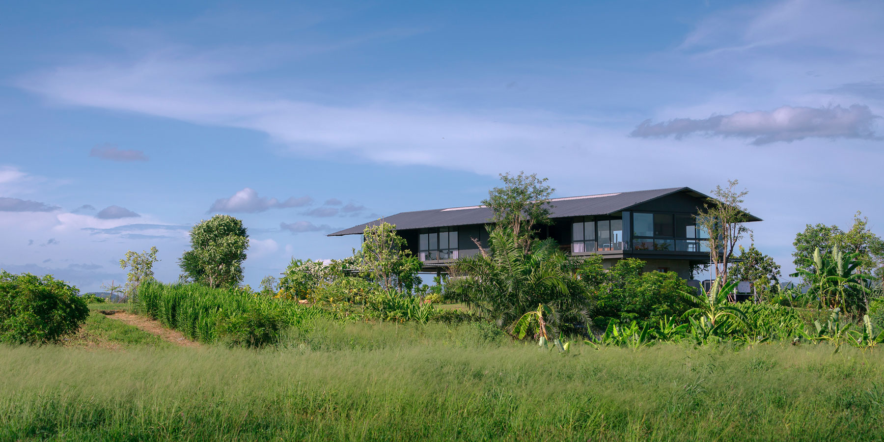 สถาปนิกเล่าว่า “สิ่งสำคัญที่สุดของพื้นที่นี้ ซึ่งเราเห็นตรงกันกับเจ้าของ คือบรรยากาศ เราทำบ้านเพื่อให้อยู่ในบรรยากาศของไร่นี้แล้วมองเห็นวิวพาโนรามาโดยรอบตลอดเวลา อันนี้เป็นคีย์คอนเซ็ปต์ของมัน” ท่ามกลางที่ตั้งที่แวดล้อมด้วยธรรมชาติ การออกแบบบ้านหลังนี้กลับไปสู่โจทย์อันเรียบง่าย โดยมุ่งหวังให้สถาปัตยกรรมเป็นตัวรองที่ช่วยขับกล่อมให้ธรรมชาติได้ทำหน้าที่อย่างโดดเด่นเสียมากกว่า