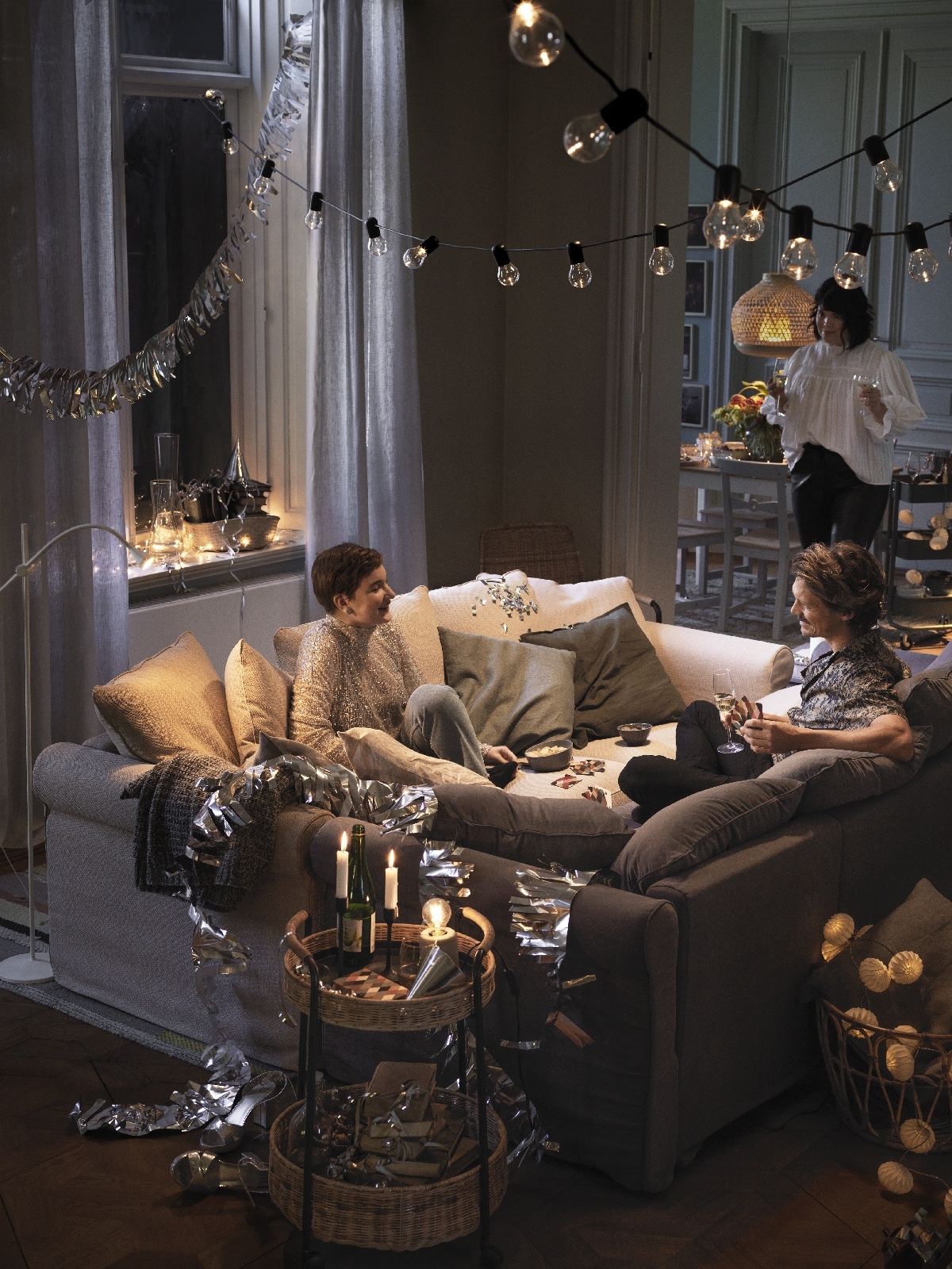 พื้นที่แคบไม่ใช่อุปสรรคในการจัดปาร์ตี้แบบชิลๆ ลองหมุนโซฟาสองตัวเข้าหากัน สร้างมุมนั่งสำหรับพูดคุยหรือเล่นเกมได้ยาวๆ แถมนุ่มสบายอีกด้วย เพิ่มแสงสว่างและความอบอุ่นให้กับบ้านด้วยการประดับไฟ LED รอบๆ ห้อง หรือแขวนโคมไฟกระดาษรูปดาวบนหน้าต่างตามธรรมเนียมของชาวสวีเดน แต่งแต้มสีสันให้กับมุมมืด ด้วยไฟกลางคืนรูปร่างต่างๆ เมื่อปาร์ตี้จบลง การจัดให้ทุกอย่างกลับมาเหมือนเดิมก็เป็นเรื่องง่าย เมื่อจัดพื้นที่พร้อมแล้ว ก็เตรียมลิ้มรสความสนุกที่จะเกิดขึ้นได้เลย