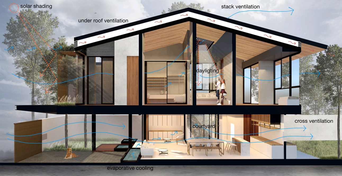 นอกจากจะเข้าใจธรรมชาติแล้ว ยังต้องทำความเข้าใจลูกค้า หรือที่เราเรียกว่า ‘Human Centric’ โดยแต่ละบุคคลก็จะมีภาวะน่าสบายหรือความสบายที่แตกต่างกัน หลังจากนั้นจึงมาดูบริบทบริเวณนั้น ซึ่งคุณแก้วใช้คำว่า ‘Vernacular Architecture’ เพราะแต่ละที่จะมีความเป็นเอกลักษณ์ของงานสถาปัตยกรรม องค์ความรู้ หรือภูมิปัญญาท้องถิ่นในบริเวณนั้น เมื่อนำทั้งสามประเด็นมาผสมผสานกัน จึงเกิดเป็นกระบวนการออกแบบสถาปัตยกรรมของ Eco Architecture