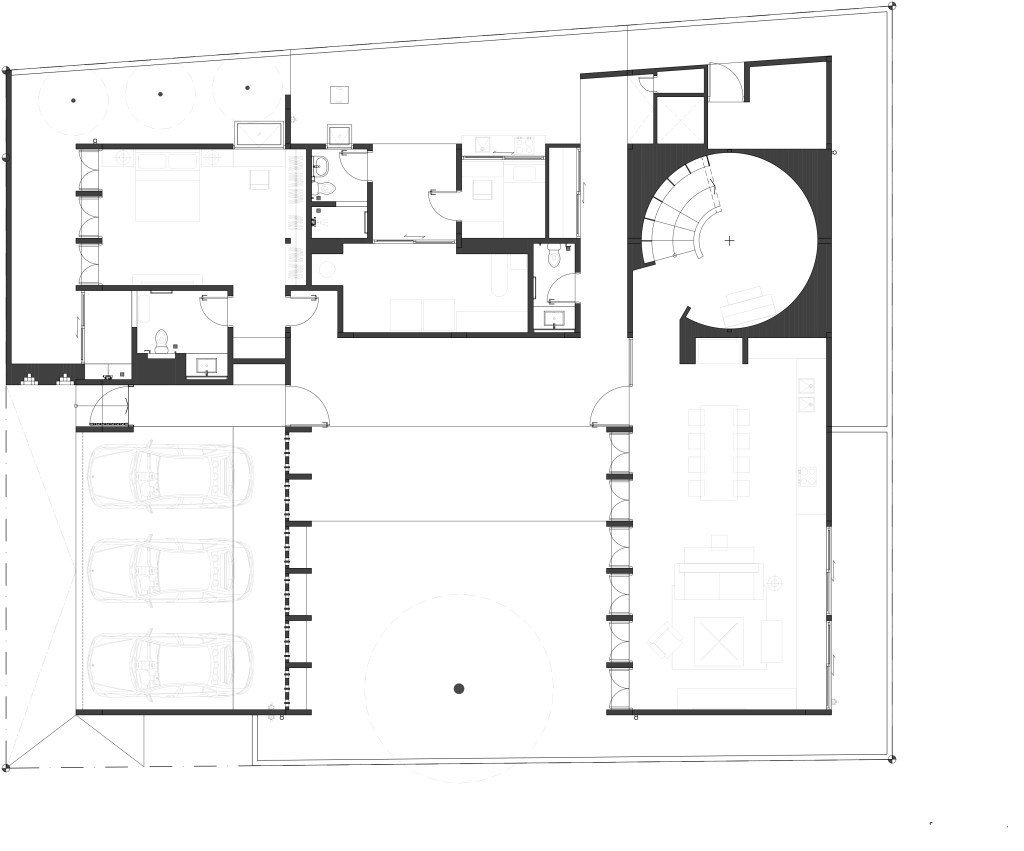 แผนผังของบ้านได้รับการออกแบบให้มีลักษณะเป็นรูปตัว “C” เพื่อให้สมาชิกแต่ละคนในครอบครัวสามารถมองเห็นกันได้ แต่ในขณะเดียวกันก็ปิดล้อมบ้านไว้อย่างเป็นส่วนตัว เพื่อปกป้องสายตาจากผู้คนภายนอก และปกป้องจากสิ่งที่ควบคุมไม่ได้ซึ่งอาจจะเกิดขึ้นได้ในอนาคต อย่างคอนโดหรืออาคารสร้างใหม่ ซึ่งจากผังรูปตัว C ยังก่อให้เกิดพื้นที่สวนตรงกลางบ้านที่ครอบครัวสามารถทำกิจกรรมต่างๆ ด้วยกัน และเติมบรรยากาศอันอบอุ่นร่มเย็นไว้ได้อย่างลงตัวอีกด้วย