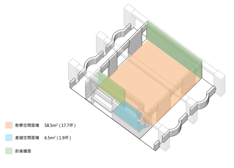 คณิตศาสตร์ วิทยาศาสตร์ วิชาดนตรีหรือวิชาอื่นๆ แน่นอนว่าย่อมมีรูปแบบการเรียนการสอนที่แตกต่างกันไปอย่างสิ้นเชิง หรือในบางครั้งการเรียนก็เกิดขึ้นการจากเล่น การแสดงออกหรือการได้สัมผัสจริง ห้องเรียนที่ออกแบบอย่างยืดหยุ่นจึงพร้อมตอบโจทย์การเรียนการสอนและดึงความคิดสร้างสรรค์ของเด็กๆ ออกมาได้มากกว่าอย่างไม่ต้องสงสัย ในส่วนของอุปกรณ์การสอนต่างๆ จะถูกเก็บลงในตู้เก็บของเคลื่อนที่อิสระ เพื่ออำนวยความสะดวกในการเคลื่อนย้าย อีกทั้งยังทำหน้าที่เป็นโต๊ะหรือที่นั่งในรูปแบบที่แตกต่างตามความเหมาะสมในการเรียนแต่ละวิชา ทำให้คุณครูหรือเด็กๆ สามารถจัดที่นั่งตามความต้องการของวิชานั้นๆ ได้อย่างไม่จำเจ