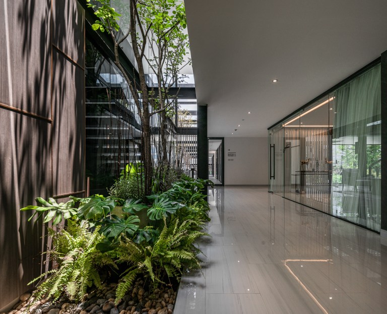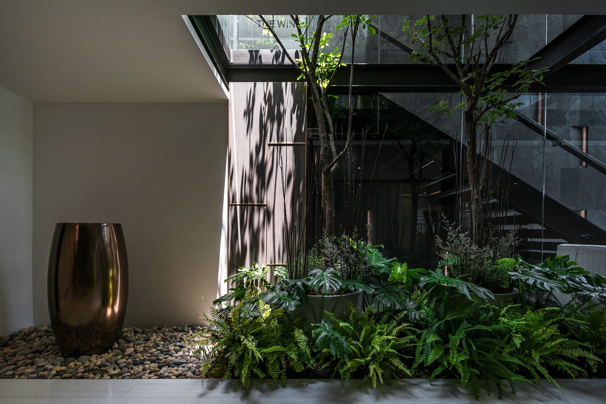 ในขณะที่สามารถทำให้ผู้ใช้โครงการรู้สึกโล่งสบาย เสมือนไม่ได้มาคลินิก รู้สึกถึงความผ่อนคลายเวลาเข้ามาใช้พื้นที่ โครงการ และ space ที่เชื่อมต่อกันด้วยต้นไม้และสวน ซึ่งทำให้อาคารนี้ดูโดดเด่นทั้งภายในและภายนอกกลายเป็นสถาบันเสริมความงามแนวใหม่ ที่ตอบโจทย์ลูกค้าและเจ้าของโครงการได้เป็นอย่างดี