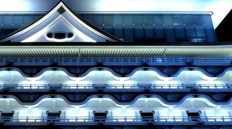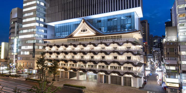 ถึงแม้ว่าคาบูกิรูปโฉมใหม่ที่เราอยากแนะนำจะไม่ใช่รูปแบบของการแสดงเหมือนปกติ แต่คาบูกิรูปโฉมนี้ก็เปี่ยมไปด้วยจิตวิญญาณอันทรงคุณค่าไม่แพ้กัน สำหรับ Hotel & Museum Royal Classic, Osaka Namba แห่งนี้นั้นเพิ่งจะเปิดบริการไปเมื่อปลายปี 2019 ที่ผ่านมา การผสมผสานจิตวิญญาณเก่าและใหม่จนกลายเป็นสถาปัตยกรรมที่มีเอกลักษณ์เฉพาะตัวนี้ได้รับความสนใจไม่น้อยทีเดียว ในส่วนคอนเซ็ปต์ของโรงแรมนั้นก็คือ Hotel Museum ที่เป็นการผสมผสานพิพิธภัณฑ์ศิลปะร่วมสมัยให้เข้ากับที่พักหรูหราระดับมาตรฐานสากล ภายในของส่วนอาคาร The Osaka Shin Kabukiza Theatre ถูกปรับเปลี่ยนให้เป็นโถงต้อนรับที่ผสานส่วนจัดแสดงผลงานศิลปะในแบบมาตรฐาน Art Museum ในส่วนของอาคารใหม่ด้านบนนั้นเป็นโซนห้องพัก ห้องประชุม ห้องจัดเลี้ยง ไปจนถึงภัตตาคารและบาร์สุดเก๋บนชั้นดาดฟ้า แน่นอนว่าด้วยสถาปัตยกรรมที่เป็นเอกลักษณ์และคอนเซ็ปต์ที่โดดเด่นเฉพาะตัวนี้ทำให้โรงแรมนี้ได้รับความสนใจเป็นอย่างมากในทันทีที่เปิดตัว ไม่แพ้รอบปฐมทัศน์ของละครคาบูกิที่เคยเปิดแสดง ณ โรงละครแห่งนี้เช่นกัน