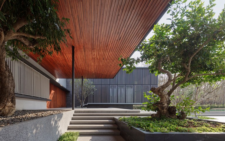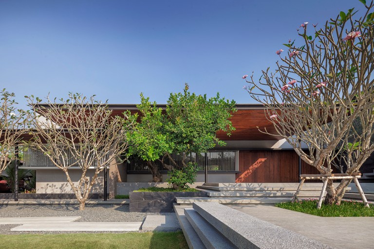 สำหรับสถาปัตยกรรมในแบบโมเดิร์น ใจความสำคัญของงานออกแบบอยู่ที่รูปลักษณ์เส้นตรงเรียบเฉียบที่ตอบกับแนวคิดในเรื่องอรรถประโยชน์ที่เน้นฟังก์ชันให้มากที่สุด การตกแต่งให้น้อยที่สุด เช่นนั้นเอง หลังคาแบนราบที่เป็นเอกลักษณ์ของงานโมเดิร์นจึงเป็นอีกลายเซ็นหลักของงานสถาปัตยกรรม และที่สำคัญคือ ฟังก์ชันการใช้งานจริงจะต้องตอบกับบริบทภูมิอากาศแบบเมืองไทยด้วย