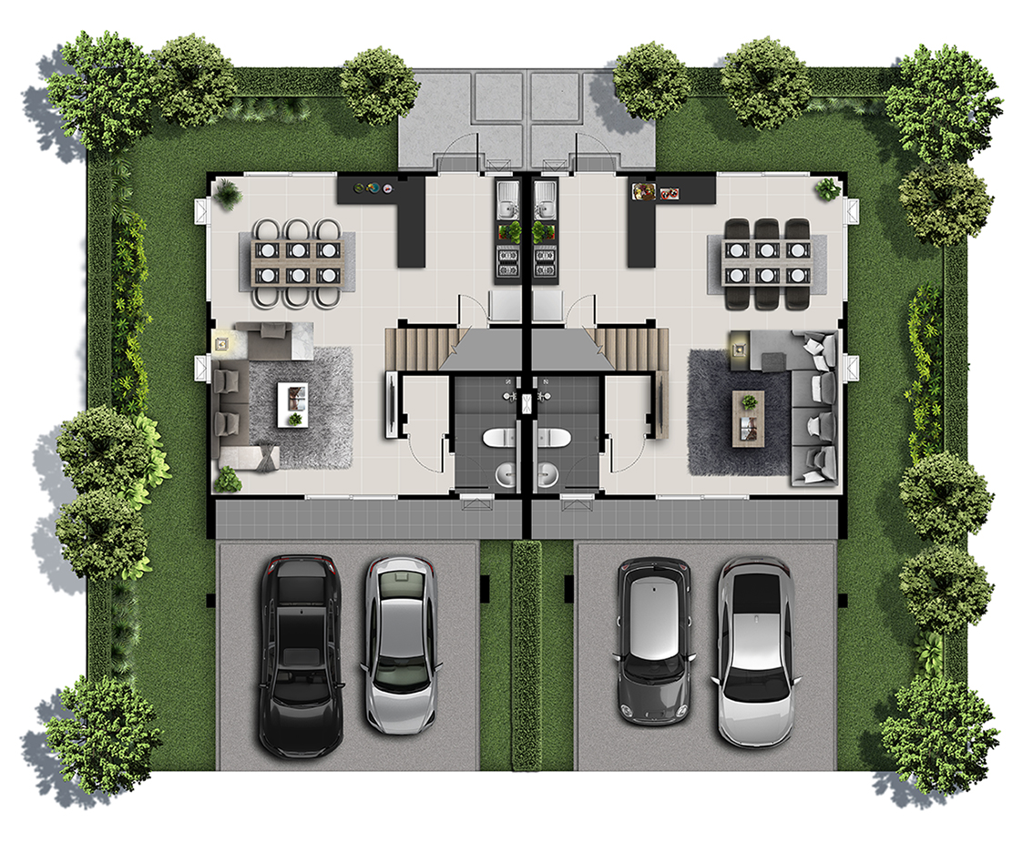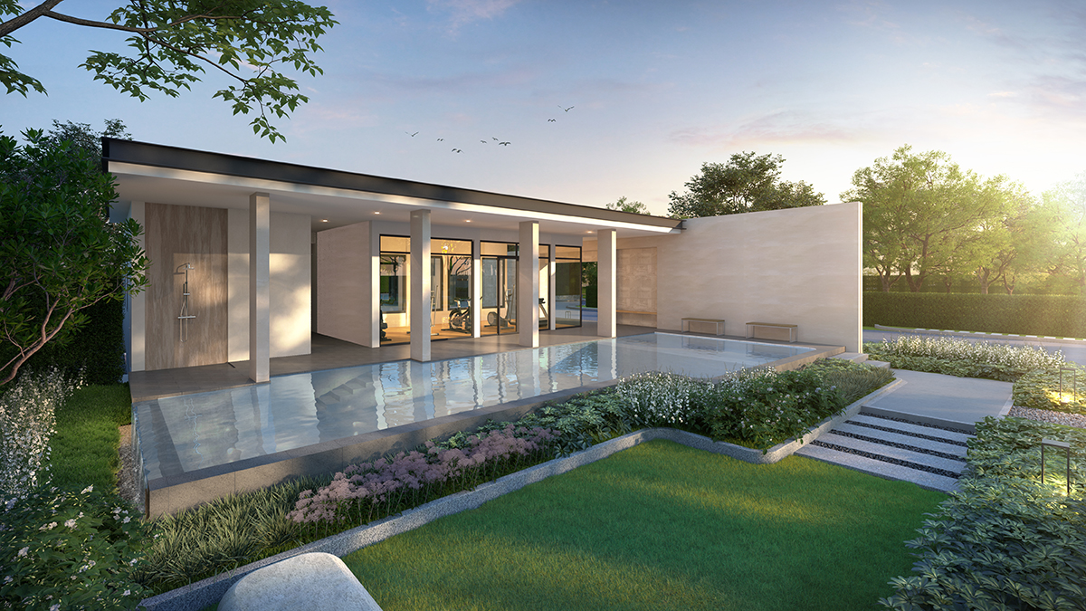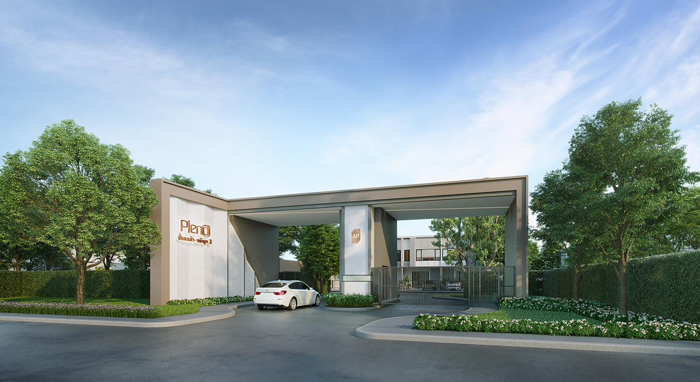 บ้านแฝดหรูโมเดลใหม่ในโครงการแกรนด์ พลีโน่ บางนา-อ่อนนุช แบบบ้านที่รู้สึกถึงความแกรนด์ มีหน้ากว้างถึง 11.4 เมตรที่ทำให้แม้จะเป็นบ้านแฝดแต่ก็ให้ความรู้สึกถึงความเป็นบ้านเดี่ยวอย่างเห็นได้ชัด ด้วยการจัดวางพื้นที่ใช้สอยอย่างพอเหมาะพอควร อีกทั้งยังออกแบบสวนรอบบ้านให้ความรู้สึกว่าบ้านแต่ละหลังมีระยะและสัดส่วนเป็นของตนเอง สำหรับงานออกแบบสถาปัตยกรรมนั้นเรียบง่ายแต่ทว่าแฝงรายละเอียดเอาไว้อย่างเต็มที่ อย่างการออกแบบ ‘เฟรม’ ทั้งบริเวณชั้น 1 และชั้น 2 ทำให้บ้านดูมีมิติจากเฉดเงา อีกทั้งยังเปรียบเสมือน façade ที่ช่วยสร้างความเป็นส่วนตัวได้เป็นอย่างดี นอกจากนั้นเพื่อเป็นการให้ทำกิจกรรมภายในบ้านได้ตลอดทั้งวันโดยที่ไม่ร้อน ทางโครงการได้กำหนดช่องเปิดและขนาดช่องเปิดเอาไว้อย่างเพียงพอ ทำให้แสงและลมธรรมชาติเข้ามาถ่ายเทภายในบ้านได้ตลอดทั้งวัน อีกทั้งโทนสีที่เลือกใช้นั้นมีความเป็นธรรมชาติมาก รู้สึกผ่อนคลายอบอุ่น ประกอบกับหลังคาทรงจั่วแล้ว สะท้อนความรู้สึกของการเป็น “บ้านเดี่ยว”