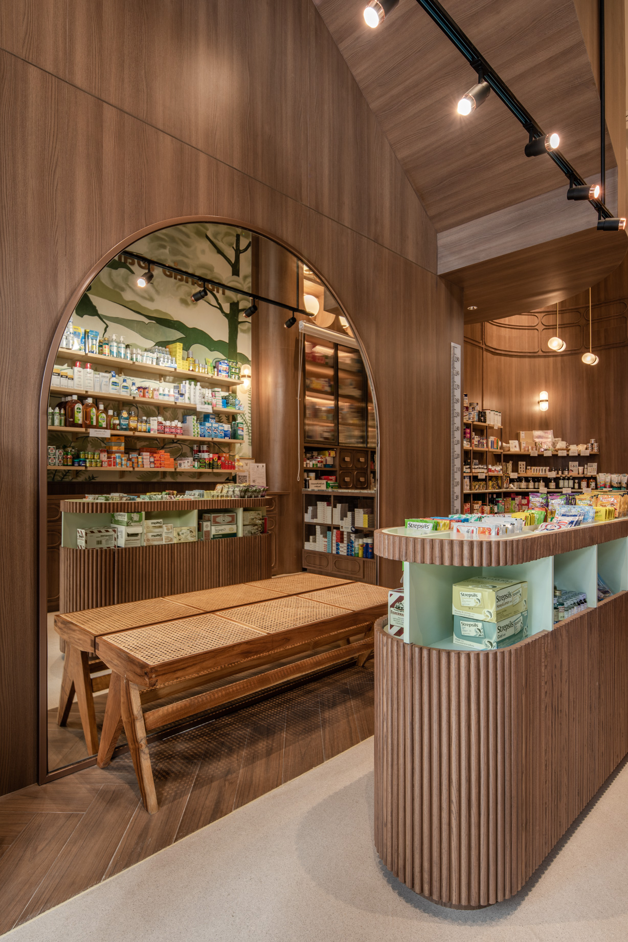 ในขณะที่บริเวณชั้น 2 เป็นพื้นที่ของร้านขายผลิตภัณฑ์ออร์แกนิกเกี่ยวกับสุขภาพและความงาม ทีมผู้ออกแบบยังคงใส่สัญลักษณ์ต่าง ๆ ของความเป็นยาลงไปในการตกแต่ง แต่เพิ่มมิติของความเป็นผู้หญิงด้วยรายละเอียดการตกแต่งต่าง ๆ เช่น การเลือกใช้โทนสีชมพูเหมือนผิวของผู้หญิง การปาดพื้นผิวที่ไม่จำเป็นต้องเนี้ยบสวย มีความ Rustic และ Matte ซึ่งได้รับแรงบันดาลใจมาจาก ความสวยงามที่ไม่จำเป็นต้องสมบูรณ์แบบ