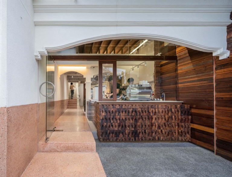 ในความหมายของการรีโนเวท แน่นอนว่าสถาปนิกก็ยังคงเก็บรักษาดีเทลที่น่าสนใจของอาคารเดิมไว้ เช่น อาร์คโค้งในชั้นแรก ตั้งแต่บริเวณด้านหน้าอาคารมาจนถึงพื้นที่ภายใน ถูกขัดเกลาใหม่ด้วยสีขาว และประกบเข้ากับวัสดุไม้ที่ทำให้การออกแบบดูน่าสนใจยิ่งขึ้น เป็นการอนุรักษ์รูปแบบของอาคารเก่าที่สะท้อนถึงเอกลักษณ์เดิมได้เป็นอย่างดี
