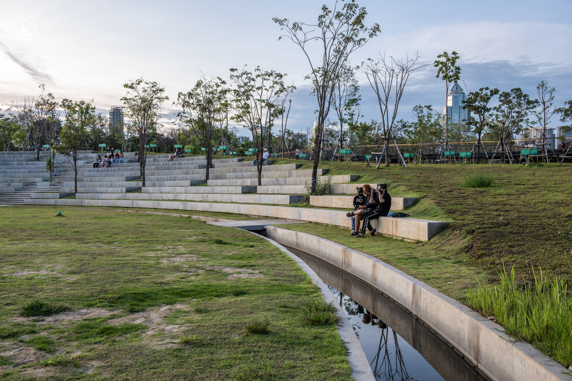 “เราตั้งใจออกแบบพื้นที่สวนให้มีความเป็นเรามากที่สุด ความหมายก็คือ กรุงเทพฯ มีภูมิประเทศเป็นที่ลุ่มต่ำ อยู่กับน้ำมาโดยตลอด ซึ่งในอดีตเราใช้ประโยชน์จากคลองเป็นส่วนใหญ่ ไม่ว่าจะเป็นการกินดื่ม ทำเกษตรกรรม และสัญจร แต่ในทุกวันนี้เราหันหลังให้กับคลอง เพราะคลองในปัจจุบันกลายเป็นท่อระบายน้ำของเมือง จนนำไปสู่ความเน่าเสียและใช้งานไม่ได้ในสุด ซึ่งถ้าหากเราฟื้นฟูสภาพแวดล้อมเหล่านี้ให้ดีขึ้น คุณภาพชีวิตของผู้คนก็จะดีตามไปด้วย”