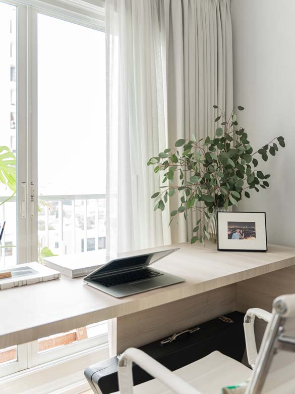 เมื่อพื้นที่ใช้สอยเดิมมีขนาดไม่ตอบโจทย์การใช้งาน ห้องใหม่ที่คุณโอ๋เลือกมีขนาด 108 ตรม. ซึ่งเพียงพอกับการเป็นโฮมออฟฟิศขนาดเล็กได้อย่างสบาย จากที่ได้คุยกันคุณโอ๋มีความชอบเรื่องของแอนทีคและรักในสไตล์มินิมัลเป็นทุนเดิม เมื่อออกแบบห้องใหม่ จึงใช้ความชอบในสไตล์มิกซ์แอนด์แมตท์มาใช้แบบเต็มๆ ดังนั้นจึงไม่น่าแปลกใจที่เธอจะสนุกไปกับโปรเจครีโนเวทนี้