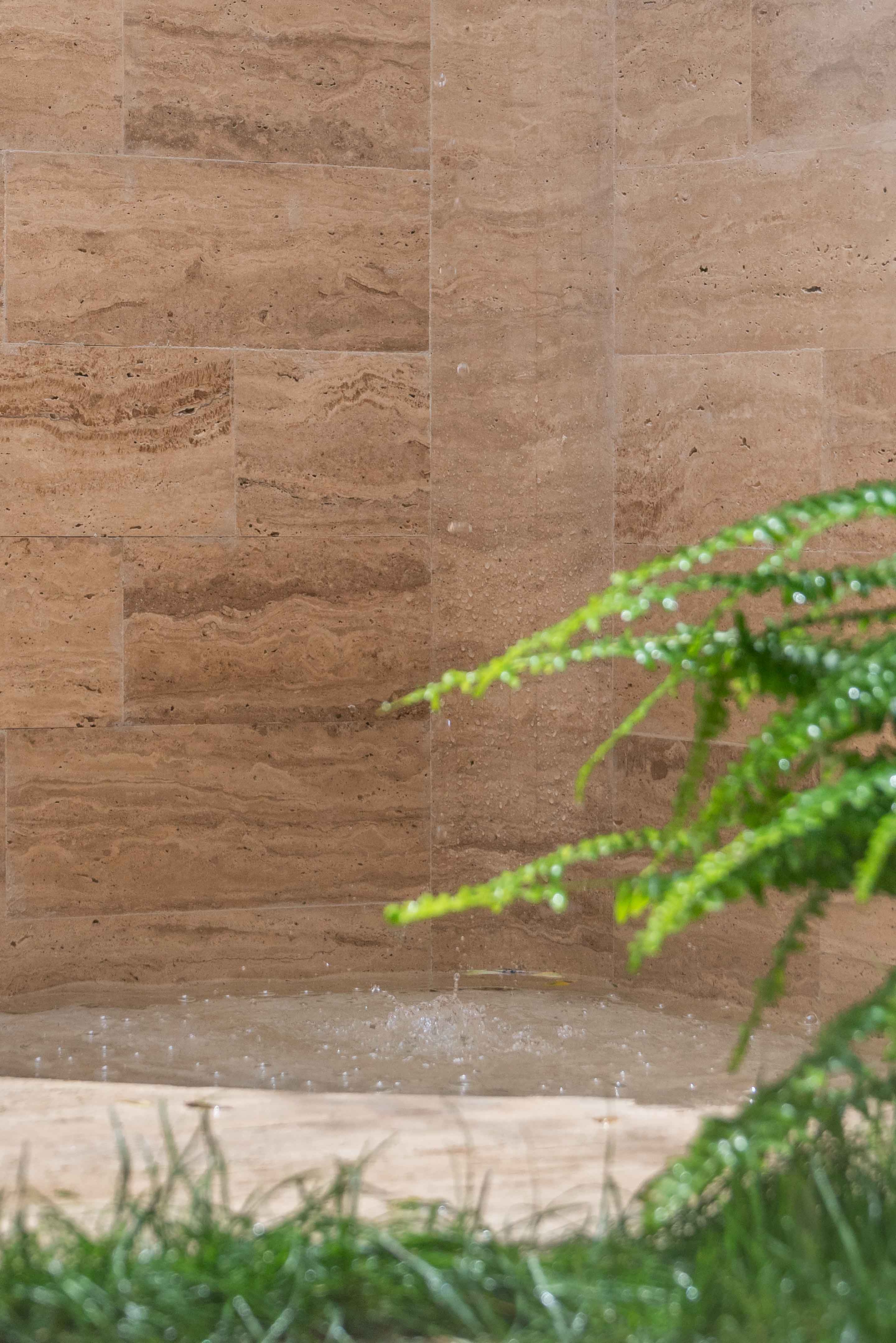 เราจะเห็นขั้นเล็ก ๆ ของบันได ซึ่งระหว่างขั้นมีการซ่อนท่อระบายน้ำเอาไว้ ทำให้เรามองไม่เห็นท่อระบายน้ำ ซึ่งน้ำจะไหลลงไปหมุนเวียนกับแทงค์น้ำที่ถูกซ่อนไว้ใต้ดิน