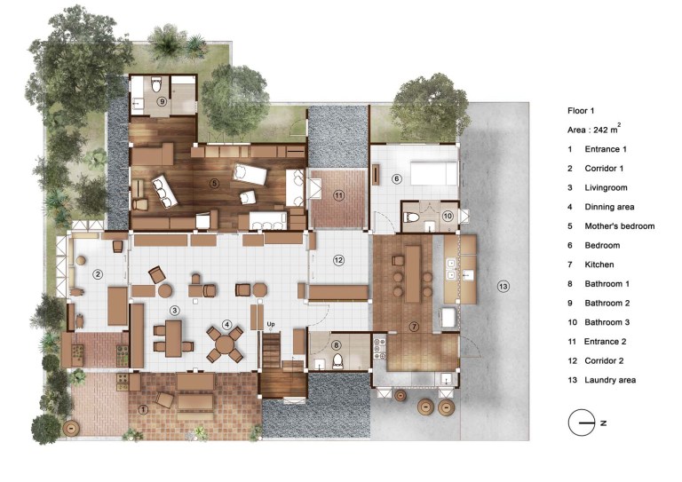 แผนในอนาคตที่เจ้าของบ้านแอบฝันเอาไว้คือ อยากให้บ้านหลังนี้เป็นพื้นที่ส่วนกลางสำหรับเพื่อน ๆ ที่มีวิถีชีวิตคล้าย ๆ กัน ไม่มีลูก ต้องการใช้ชีวิตเรียบง่าย พึ่งพาตนเอง ได้มาใช้ชีวิตด้วยกันในช่วงเกษียณอายุ เป็นส่วนกลางที่พร้อมเปิดรับสมาชิกจะได้นำผลผลิตที่ทำมาแบ่งปันกัน ไม่ว่าจะเป็นพื้นที่ครัว มุมนั่งเล่น ห้องนอนห้องน้ำของพยาบาลคนดูแล แม่บ้าน ชั้นบนมีพื้นที่โล่งใช้สอนโยคะนั่งสมาธิร่วมกัน การวางแปลนภายในบ้านจึงให้ความสำคัญกับความต่อเนื่องของพื้นที่ ให้ง่ายต่อการปรับเปลี่ยนการใช้งานได้ในอนาคต