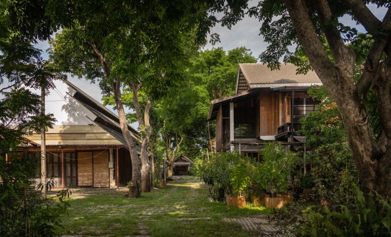 หลังจากได้ร่วมงานกันมาแล้วกับบ้านขนำน้อย ที่พักศัยชั่วคราวในระหว่างทำนา ใช้วัสดุท้องถิ่น ก่อสร้างง่าย สร้างขยะใหม่ให้น้อยที่สุดเท่าที่ทำได้ คุณแม่เจ้าของบ้านก็อยากชวนทีมยางนาสตูดิโอมาร่วมงานกันอีกครั้ง กับโปรเจ็กต์รีโนเวทบ้านหลังสุดท้ายของคุณแม่ ให้เป็นบ้านที่สามารถปรับเปลี่ยนการใช้งาน รองรับแผนวิถีชีวิตในอนาคตให้เป็นจริงได้ ใน บ้านอินทร์ หลังนี้