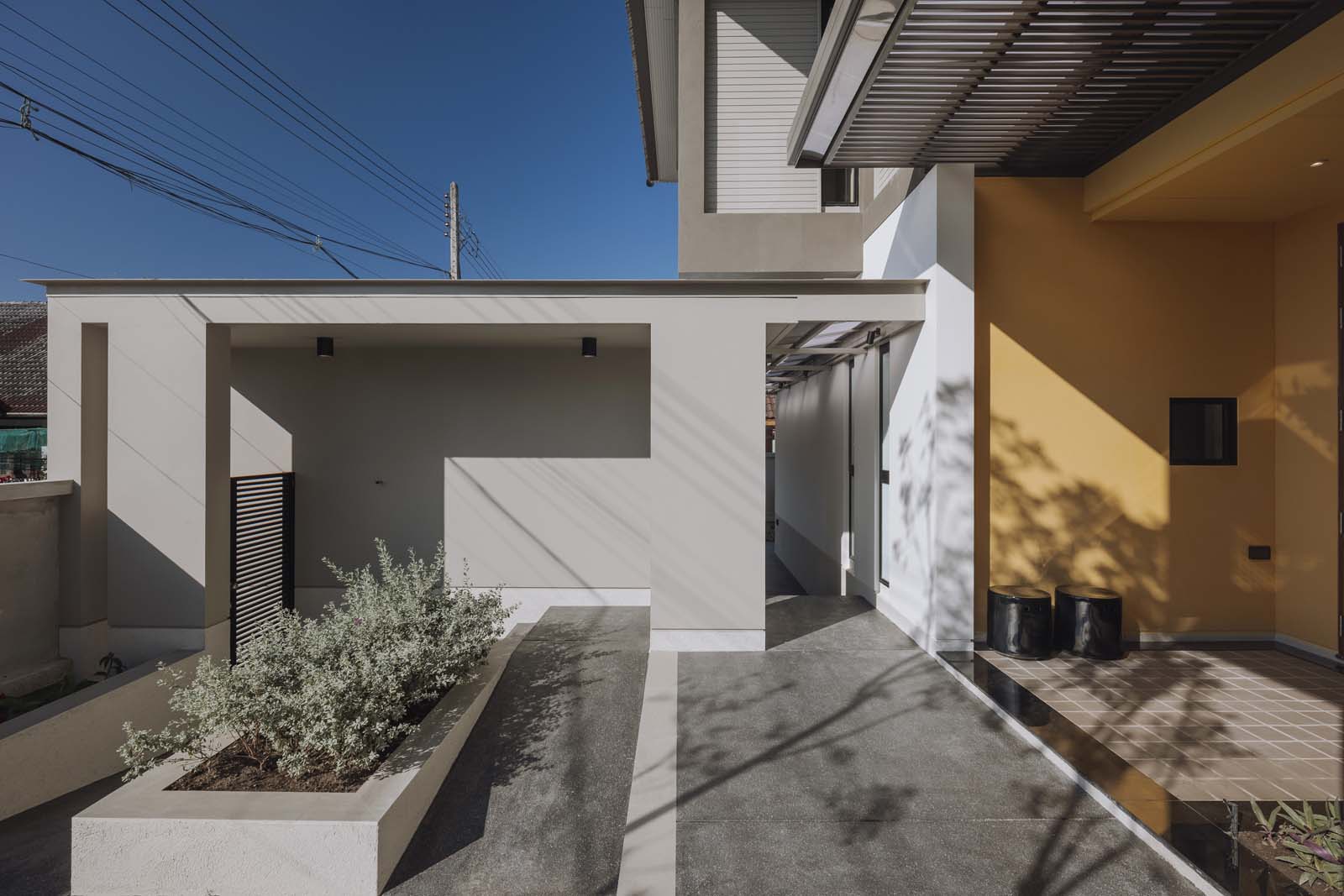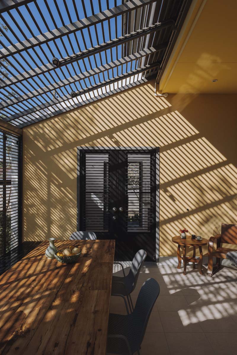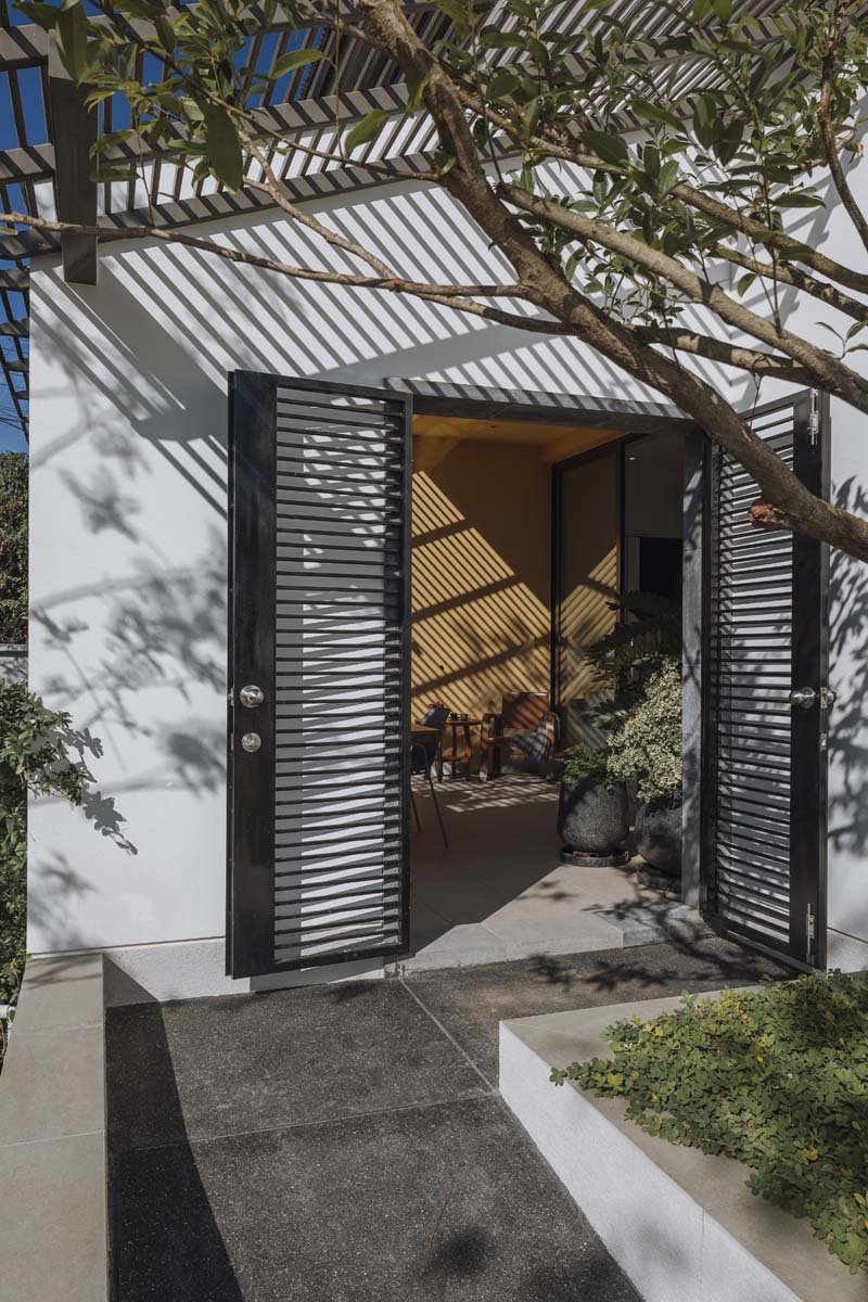 Something More : ดีเทลเล็ก ๆ เติมแต่งเข้ามาในบ้านอย่างพอดีเช่นเดิม บานประตูเกล็ดไม้ทำหน้าที่เป็นรั้วภายในที่เติมความสวยงามให้รูปด้านของอาคารได้อย่างลงตัว และยังมีฟังก์ชันที่เพิ่มความปลอดภัยอีกชั้นให้กับบ้าน