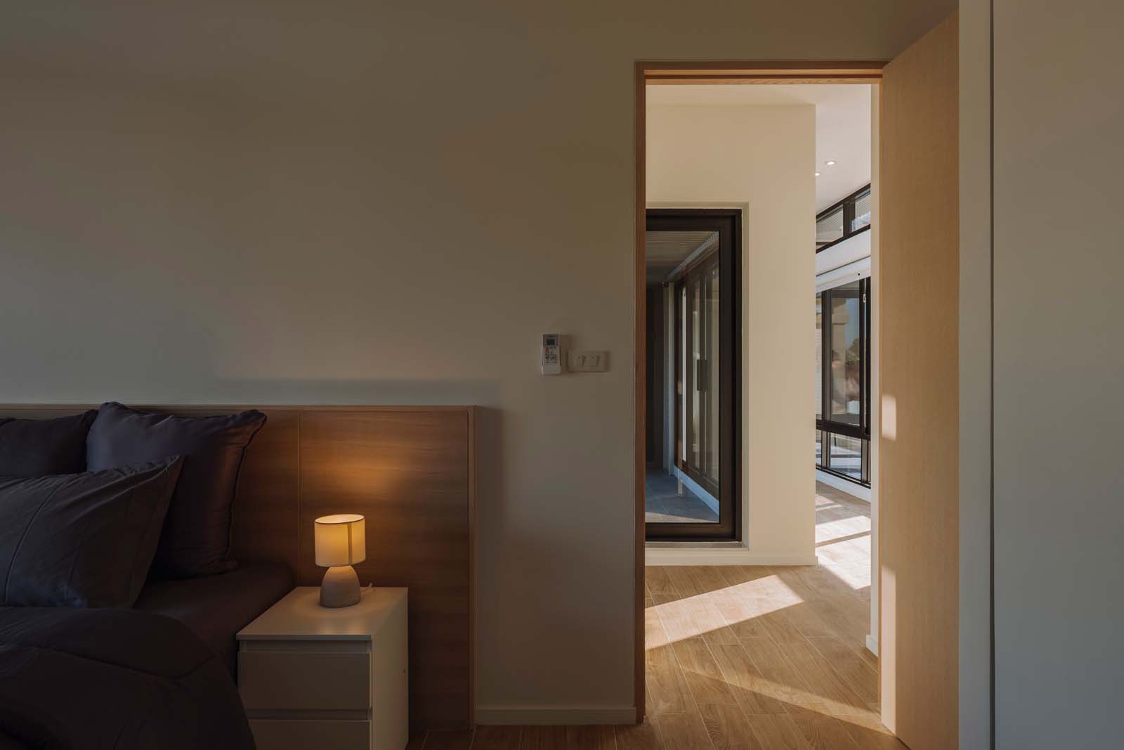 หากขึ้นไปด้านบนของเรือนเจ้าของหลังนี้ จะเจอกับพื้นที่ส่วนตัวทั้งหมด เช่น พื้นที่นอน พื้นที่ห้องทำงาน ห้องดูซีรีส์ ห้องแต่งตัว ห้องน้ำ และห้องพระ โดยที่เรือนเจ้าของและเรือนแขกจะเชื่อมเข้าหากันด้วยระเบียง คอร์ริดอร์และมีหนึ่งฟังก์ชันที่ยอมให้ใช้งานร่วมกัน นั่นคือ ห้องออกกำลังกาย ก่อนจะแยกเข้าไปเป็นโซนห้องนอนแขก ทำให้แขกและเจ้าของที่ใช้งานพื้นที่บริเวณชั้น 2 ในเวลาเดียวกัน มีความเป็นส่วนตัว โดยไม่จำเป็นต้องมองเห็นกันตลอดเวลา