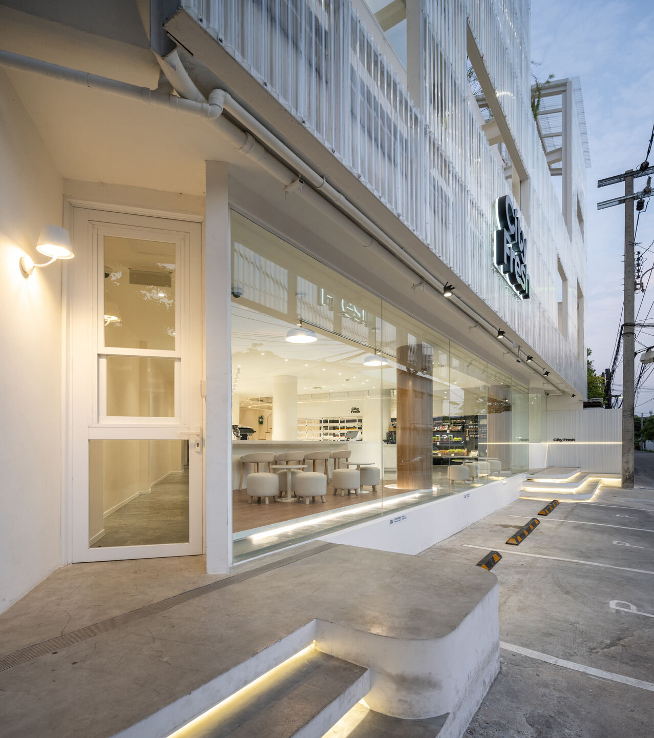 CityFresh เคยเป็นห้องแถวธรรมดาๆ ในย่านปรีดี พนมยงค์ แต่ถูกรีโนเวทให้กลายเป็นฮับใหม่ของคนรักผลไม้ด้วยฝีมือของทีมออกแบบจากสตูดิโอ SPACY ARCHITECTURE ซึ่งนอกจากภายนอกที่สวยงามแล้ว ถ้าพูดเรื่องฟังก์ชันการใช้งานของอาคาร ชั้นหนึ่งจะถูกจัดให้เป็น Commercial zone เพราะเป็นอาคารสาธารณะ ที่จะต้องเผยให้เห็นกิจกรรม การใช้งานในส่วนต่างๆ อย่างชัดเจน