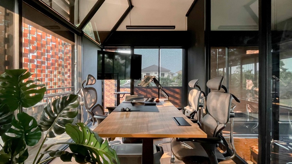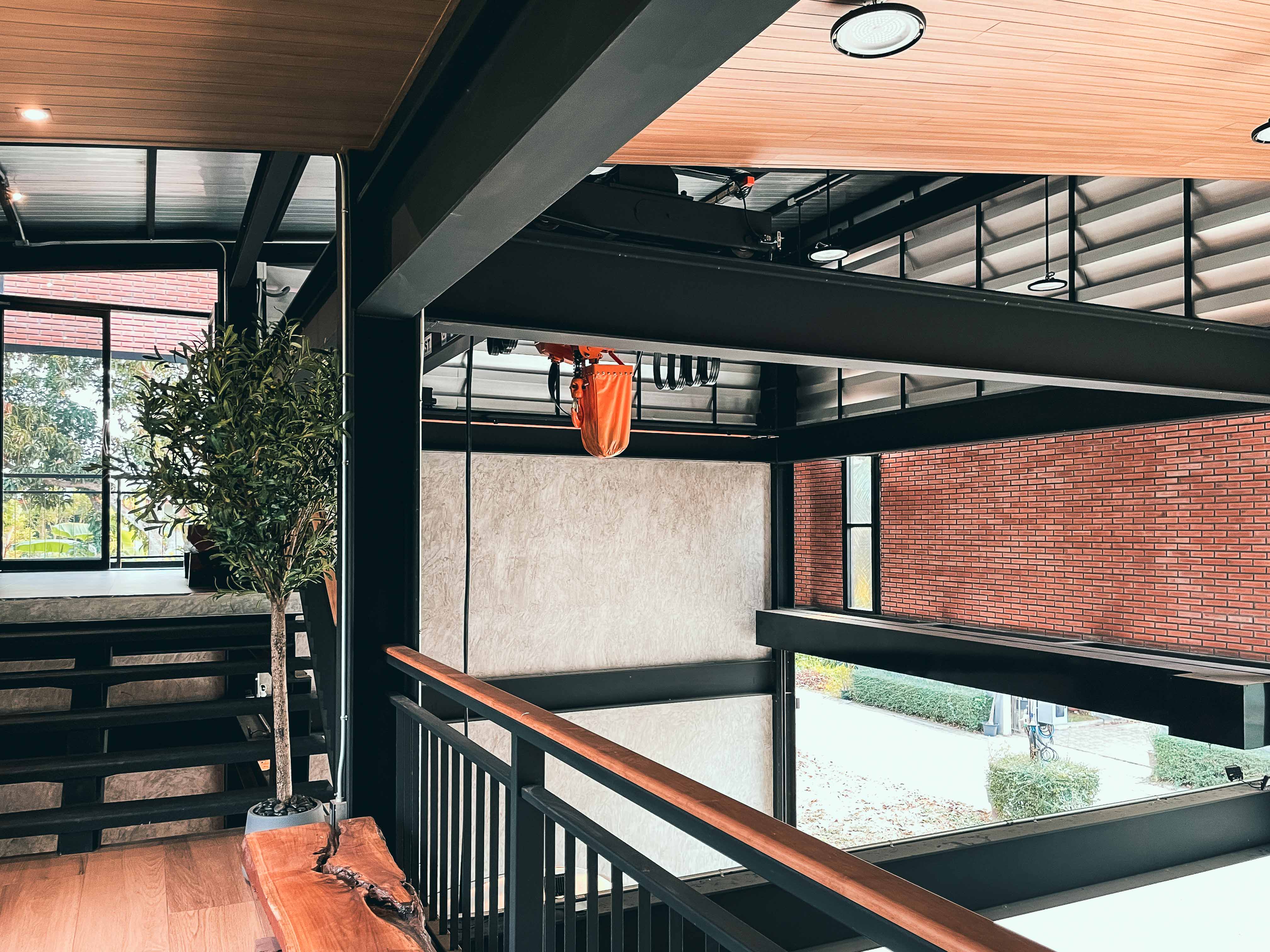 Home office ที่สร้างความผ่อนคลายเหมือนมาทำงานที่ร้านกาแฟ นำมาสู่การออกแบบที่ใช้ อิฐ เหล็ก ไม้ ซึ่งรองรับการเติบโตและ Lifestyle ของเจ้าของบ้าน