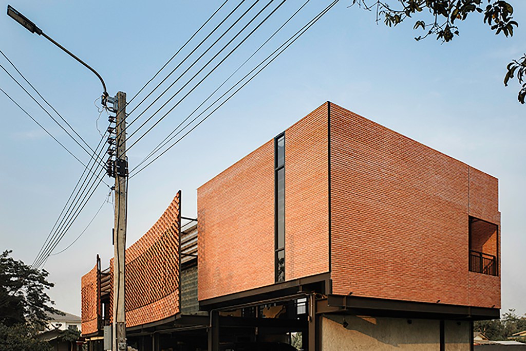 การเรียงอิฐในงานนี้เกิดจากการอยากทดลองเกี่ยวกับอิฐ โดยตั้งเป้าในการออกแบบ Façade นี้ว่าเราจะทำอย่างไรให้อิฐหนัก นั้นดู ลอย เบา และพลิ้วไหว เหมือนผ้า งานออกแบบจึงเป็นการเรียงอิฐ และหมุดองศาของแนวอิฐให้เวลามองเข้ามา สามารถมองเห็นได้ต่างกันจากแต่ละมุม ดูเบาเหมือนอิฐกำลังลอยอยู่ในอากาศ