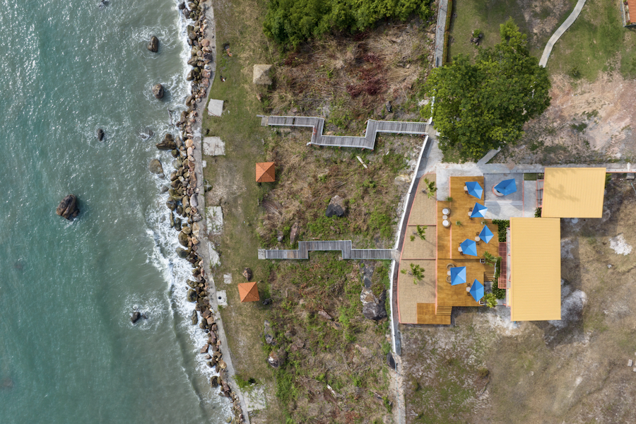 The Cliff Cafe คืออาคารสีสันสดใสโครงสร้างรูปทรงร่มกลับหัว เป็นคาเฟ่ตั้งอยู่ริมทะเลตราด แนวคิดในการออกแบบโครงการนี้ ทาง Everyday Architect & Design Studio เลือกหยิบคำขวัญจังหวัดตราดที่ว่าคือ ”เมืองครึ่งร้อยเกาะ” นำมาใช้ในการออกแบบอาคารและวางผังทั้งหมดของโครงการนี้