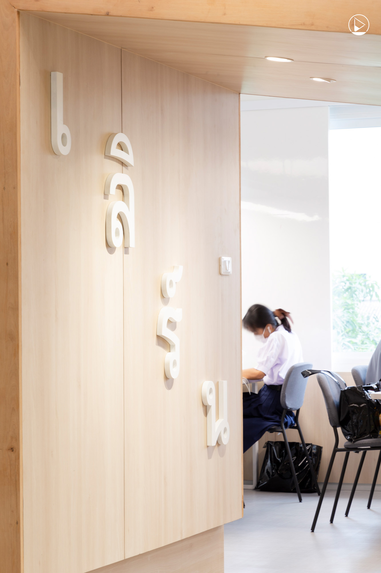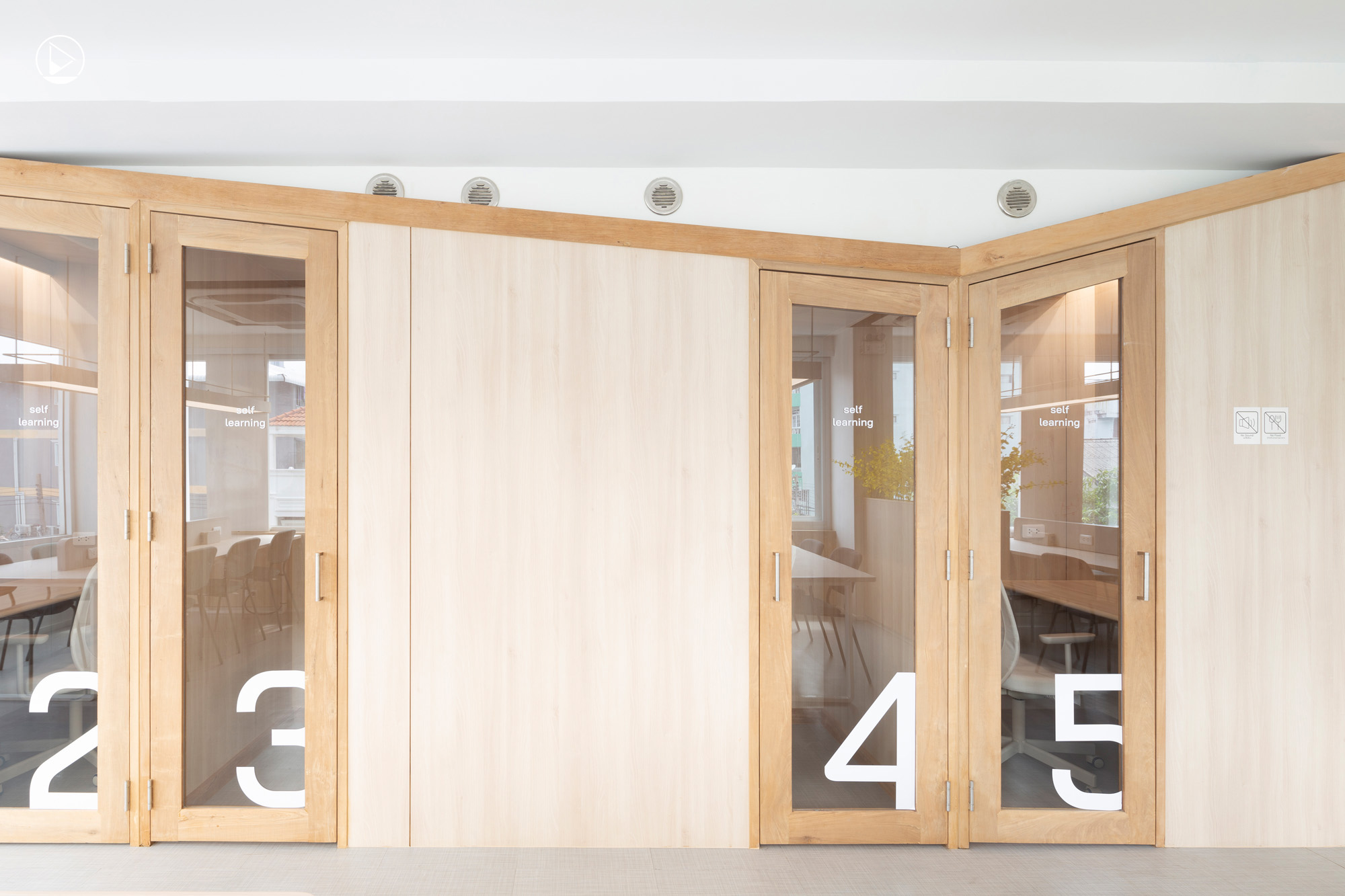 ส่วนฝั่งด้านหลังของอาคารเป็นโซน เลิร์น ซึ่งจะเป็นพื้นที่ที่สามารถนั่งทำงานได้อย่างมีประสิทธิภาพ โดยแบ่งเป็นโซนโต๊ะทำงานที่เป็นโต๊ะเดี่ยวซึ่งสามารถกาง Partition ที่ออกแบบไว้เพื่อสร้างขอบเขตพื้นที่ของตัวเองได้ชัดเจนและยังมีดีเทลดีไซน์อย่างกระดานไวท์บอร์ดที่เลื่อนได้บริเวณหน้าต่าง ทำให้น้อง ๆ นักศึกษาสามารถใช้เป็นอุปกรณ์ในการติวหนังสือ หรือทำงานได้ นอกจากนั้นยังมีโซนโต๊ะประชุมสำหรับใครที่มาเป็นกลุ่ม และมีห้องเงียบสำหรับใครที่ต้องการสมาธิ