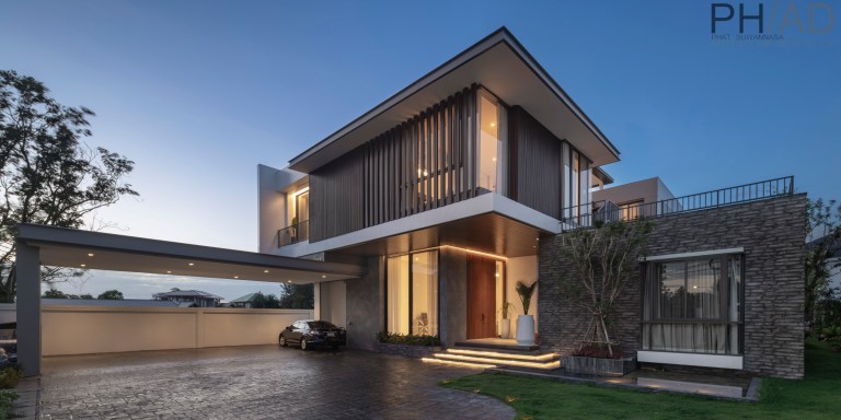 WM Residence คือเคหสถานหลังใหม่ของครอบครัวขยายที่ได้รับการออกแบบโดยคุณปัทม์ สุวรรณสา สถาปนิกผู้ก่อตั้งสตูดิโอ PH/AD ด้วยคอนเซ็ปต์ที่เขานิยามไว้อย่างน่าฟังว่า “โอบกอด..ความอบอุ่น”