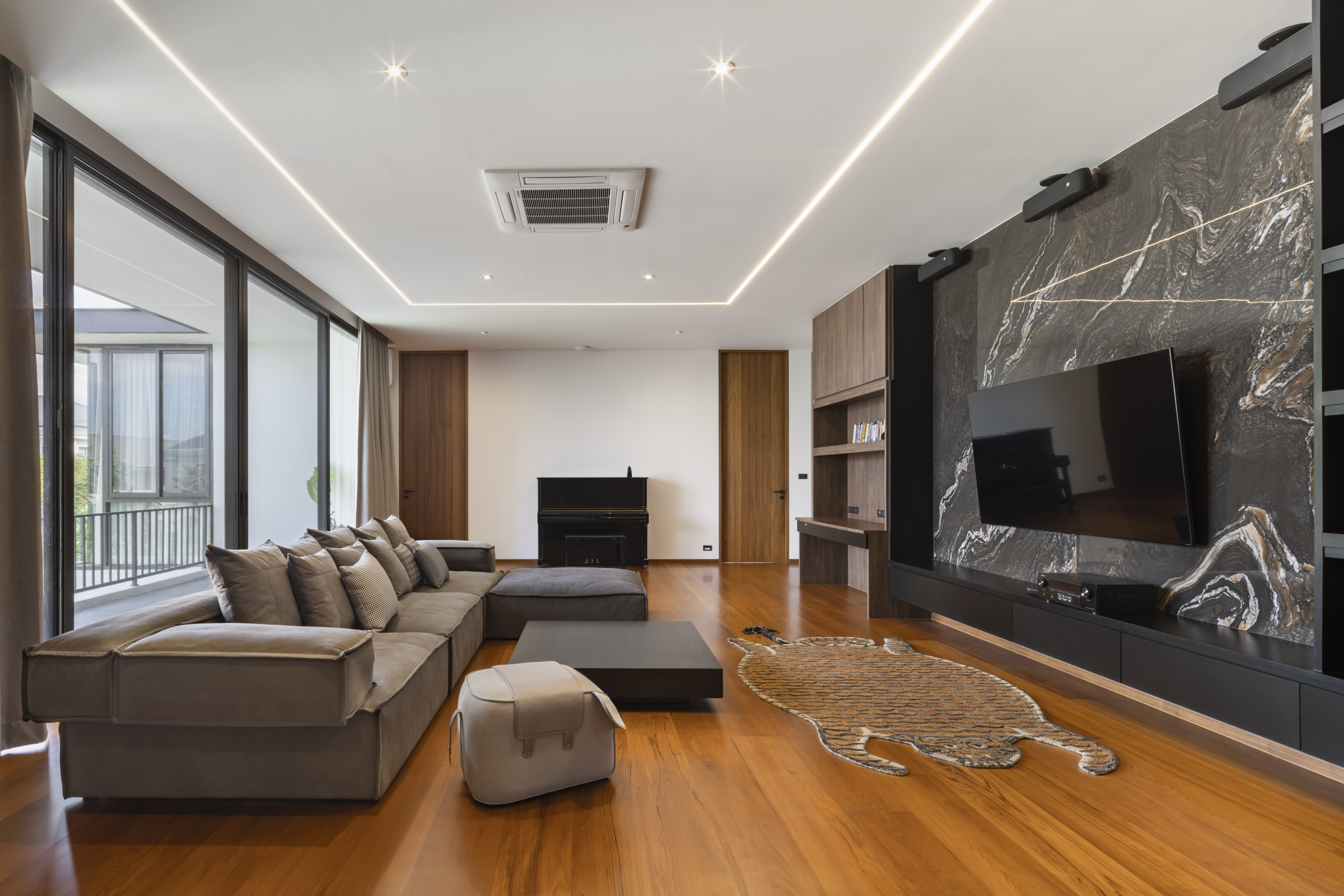 หากมองกันอย่างผิวเผิน playroom ห้องนี้คงดูกลมกลืนกับส่วนต่างๆของบ้านเสียจนทำให้เราไม่เอะใจในรายละเอียดเบื้องหลังการออกแบบแม้แต่น้อย ทว่าแท้จริงแล้วมันกลับเป็นห้องที่ได้รับความใส่ใจจากทั้งสถาปนิกและเจ้าของบ้านด้วยความละเอียดอ่อนที่สุดของตัวสถาปัตยกรรมโครงการนี้เลยก็ว่าได้