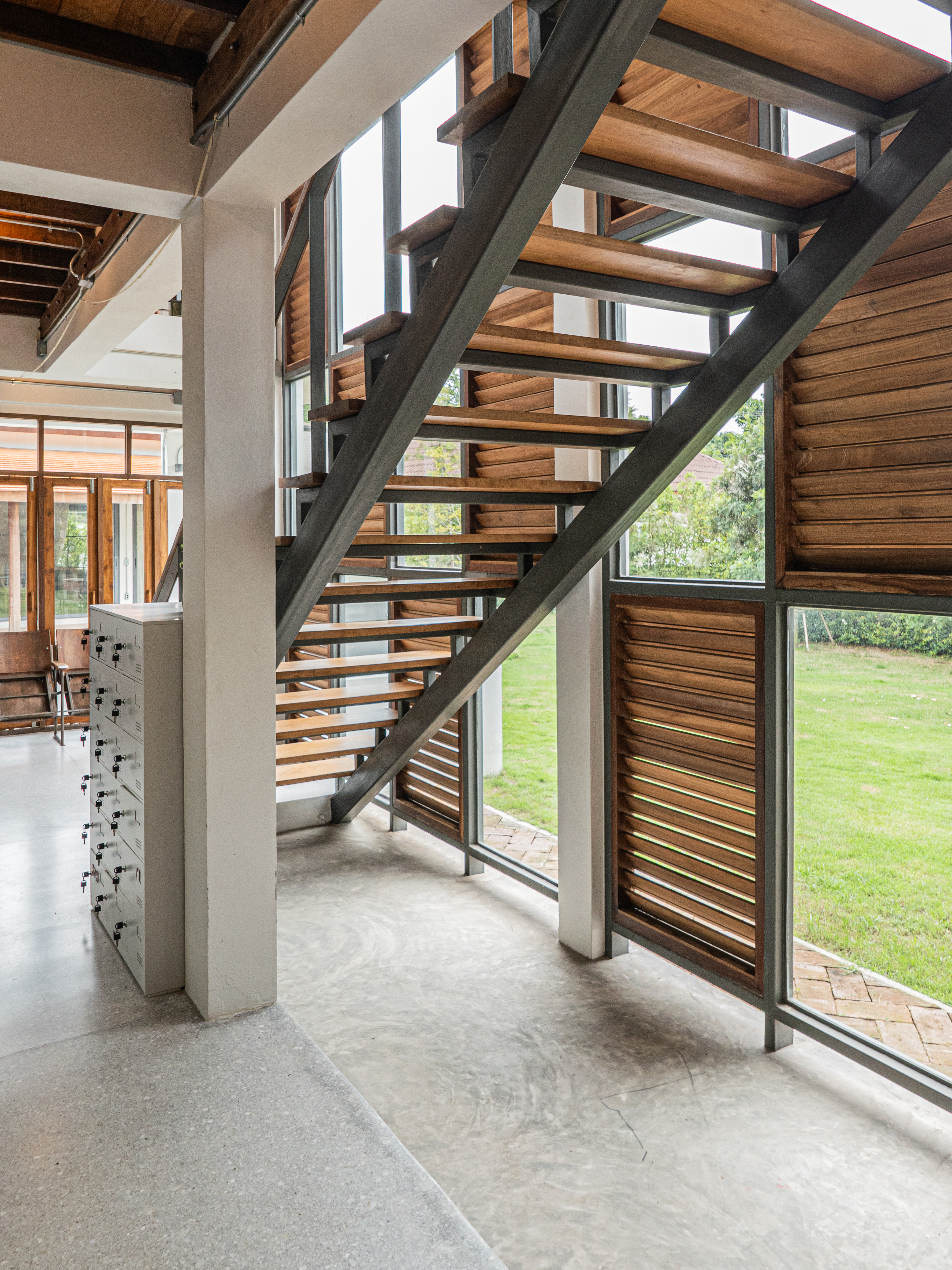 อาคารที่มีขนาดค่อนข้างใหญ่ ถูกลดทอนขนาดด้วยช่องเปิดขนาดเล็ก ที่เรียงรายกัน สถาปนิกออกแบบให้ช่องเปิดอาคารในทุก ๆ แห่ง เป็นขนาดไม่ใหญ่ แต่อยู่ติดกันเพื่อรับลม และแสงแดดให้ได้มากที่สุด ส่วนประตู หน้าต่างถูกออกแบบให้เป็นบานเปิดคู่ และ บานกระทุ้งเล็ก ๆ ให้ความรู้สึกเหมือนเรือนไทยสมัยก่อน