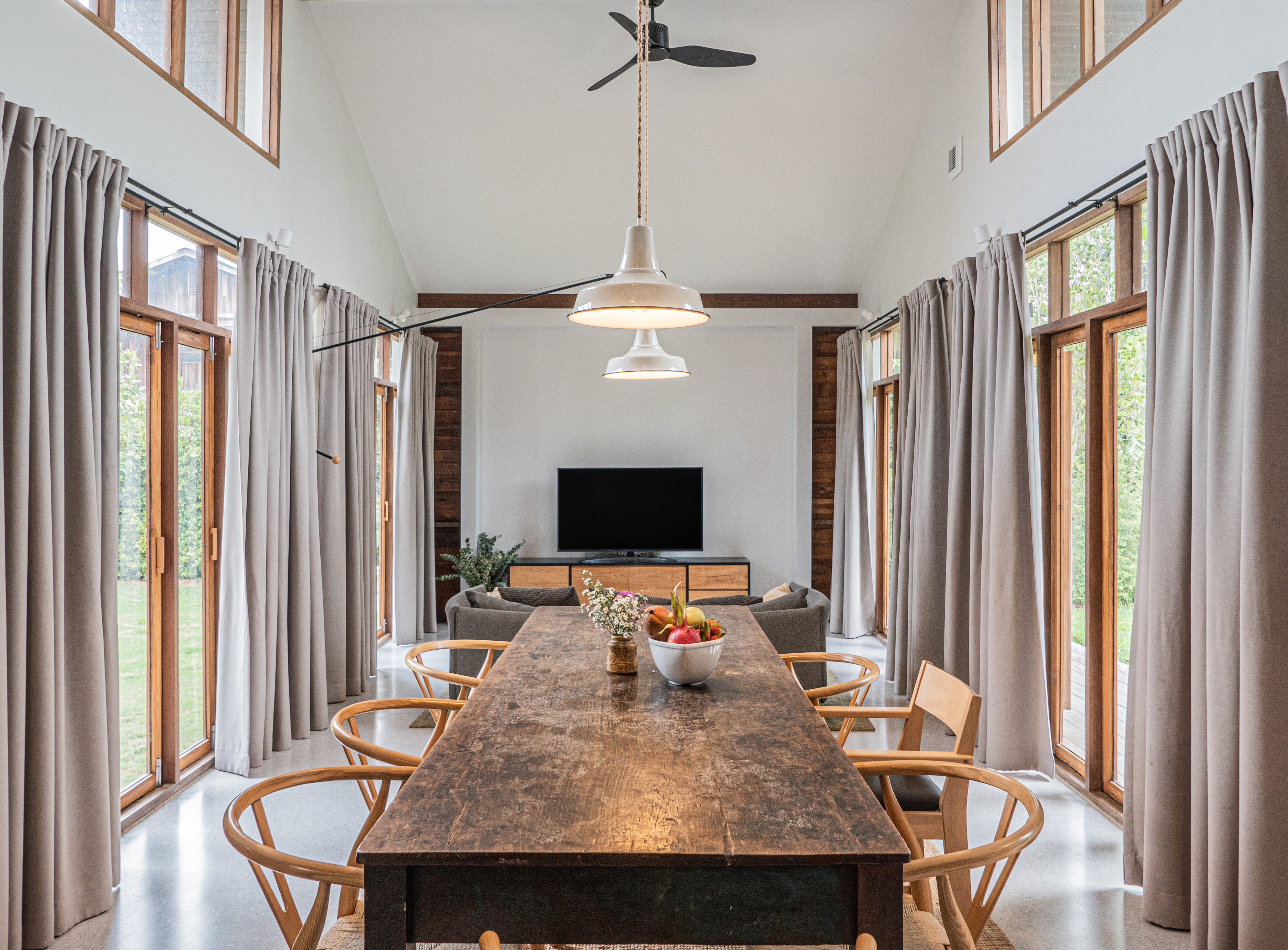 บ้านอีกหลังที่ตอนแรกจะทำเป็นโฮมสเตย์ กลับถูกเปลี่ยนเป็นบ้านพักอาศัยของคุณแม่ พื้นที่ข้างในจึงถูกปรับเป็น Open plan ที่เชื่อมพื้นที่ทุกอย่างเข้าด้วยกัน เพื่อความสะดวกในการใช้งานสำหรับผู้สูงอายุ และบ้านหลักจัดพื้นที่ไว้อย่างหลวม ๆ เพื่อจัดเตรียมพื้นที่ไว้รอให้ลูก ๆ เติบโต และอาจต่อเติมเป็นพื้นที่ส่วนตัวของลูกในอนาคต