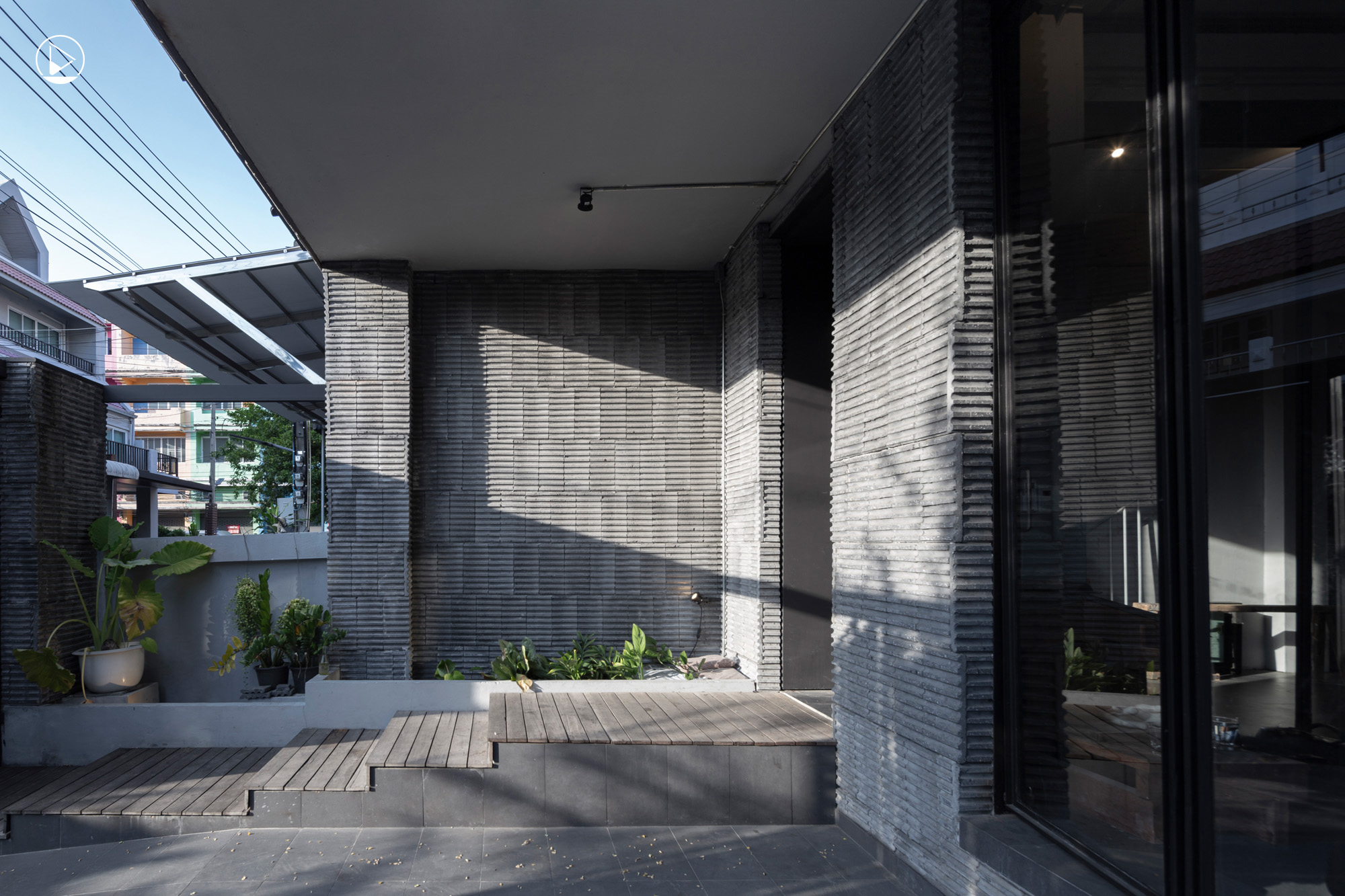 “จริงๆ ที่เห็นตอนนี้มันยังไม่เสร็จ ที่เสร็จจริงๆ คือผมจะมีผนังด้านข้าง สูง 3-4 ชั้น คือผนังมันเล่นเงา เป็นทิศใต้ ใจอยากจะทำเป็น Message อะไรสักอย่างไปแปะที่ผนังแล้วให้เงามันทำงาน ให้สื่อสารกับคนข้างนอก”