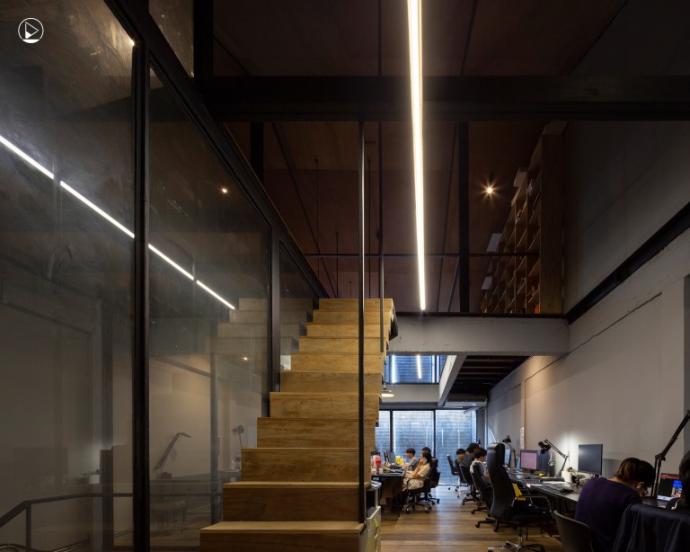 “ ตึกแถวรอบ ๆ ตัวเราเป็นบ้านเก่า มันอาจจะไม่ตอบโจทย์เรา เพราะว่าผมอยากให้น้องมีสมาธิ จากการที่เคยทำออฟฟิศก่อนหน้านี้ ตอนแรกเราอยู่ในชุมชน และก็ปิดล้อมทั้งหมดให้มีแค่คอร์ท ที่มีมุมมองข้างนอก เราอยากให้มีสมาธิในการทำงาน มาที่นี่ เราทำคอร์ทไม่ได้ เพราะเราเป็นตึกแถว แต่เราชอบวิธีการ Control View ให้เห็นงานเยอะกว่าสิ่งเร้าภายนอก อย่างหนึ่งคือ Architect เป็นเด็กซน เราก็เลยทำดีไซน์เป็นกำแพงที่เปิดปิดได้ ”
