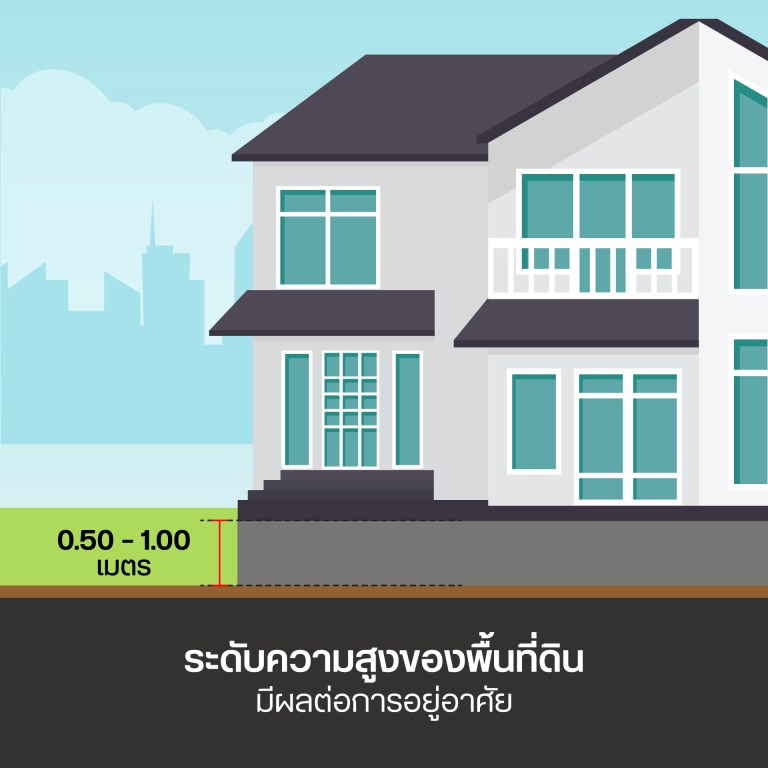 จำเป็นต้องถมดินเพิ่มระดับความสูงหรือไม่มักเป็นคำถามที่หลายๆท่านสงสัยในขั้นตอนของการเตรียมการ โดยทั่วไปแล้วไม่มีข้อกำหนดที่แน่นอน การถมดินเพื่อสร้างบ้านให้ดูที่ระดับพื้นถนนหน้าบ้านของเรา ซึ่งในบริเวณบ้านที่จะทำการก่อสร้าง ควรสูงกว่าระดับถนน 50 ซม.ขึ้นไป กรณีถนนหน้าบ้านเป็นดินแดง ลูกรัง ควรเลือกถมดินให้สูงกว่าถนนหน้าบ้าน 1 เมตรเพื่อรองรับการทำถนนใหม่ในอนาคต