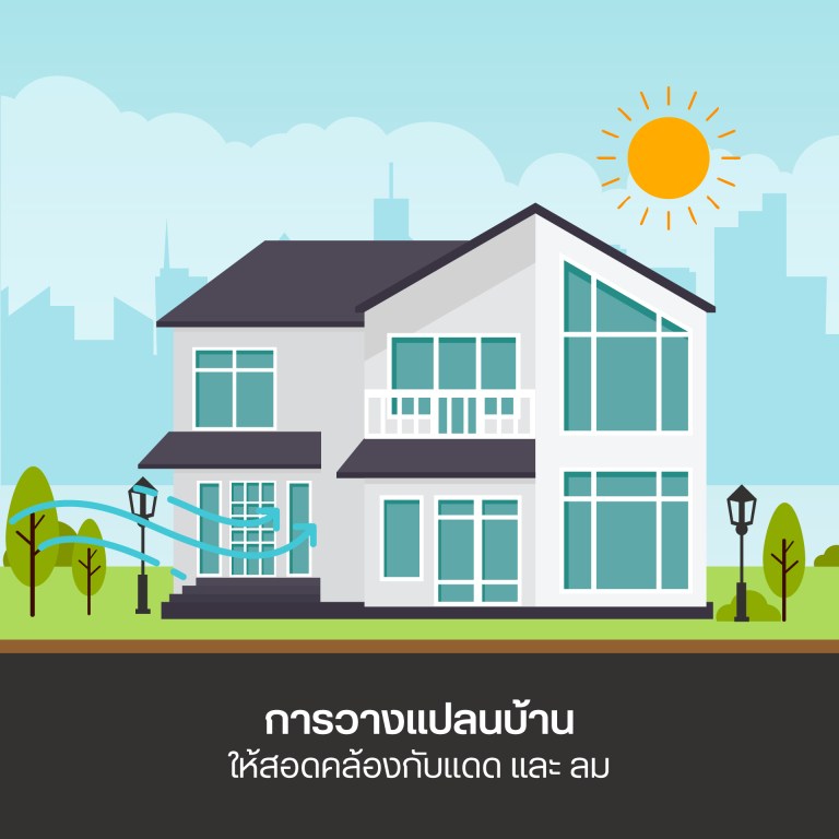 การวางแปลนบ้านให้สอดคล้องกับแดด และ ลม