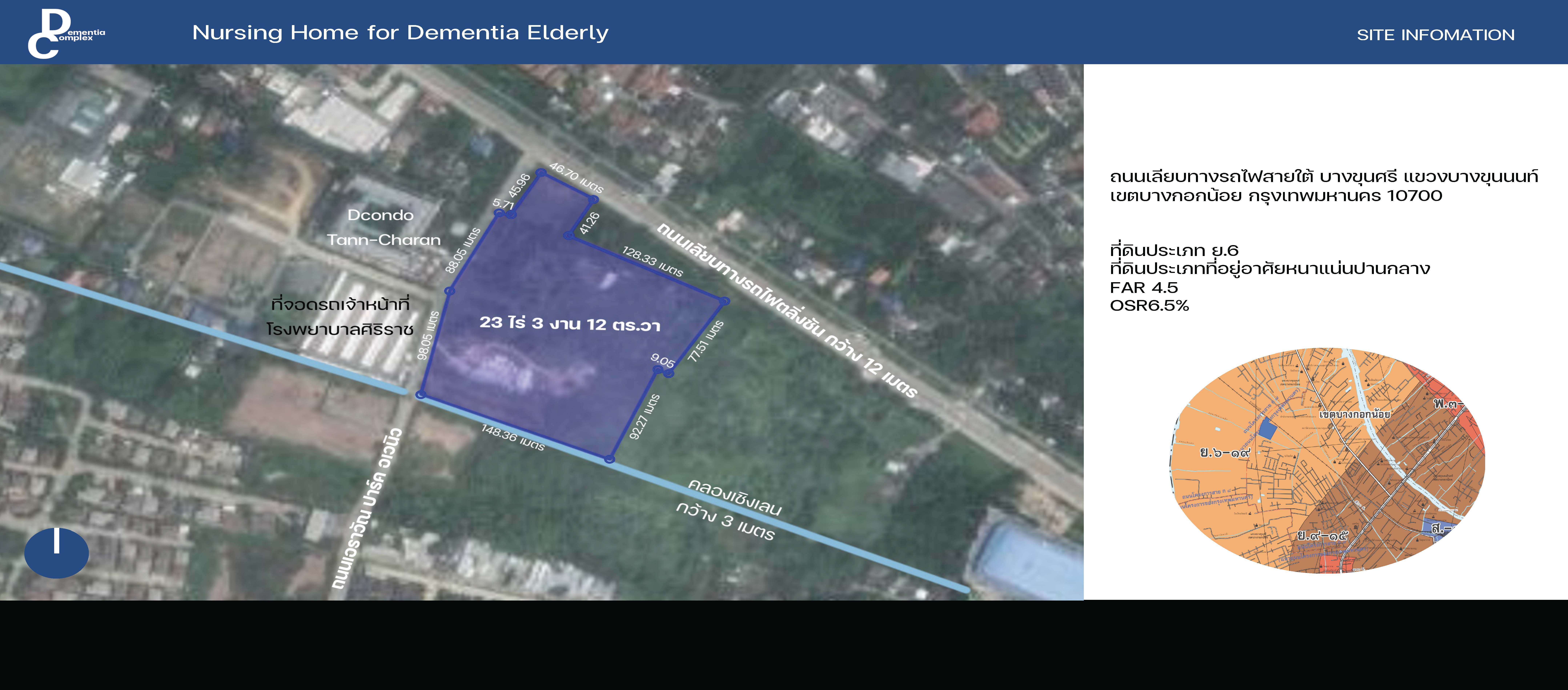 สำหรับการเลือกไซต์นั้น ปัจจัยหลักที่แพรวให้ความสำคัญคือต้องอยู่ในพื้นที่ซึ่งไม่ห่างไกลจากโรงพยาบาลจนเกินไป ทั้งนี้ก็เพื่อรองรับผู้ป่วยในกรณีฉุกเฉินหรือยามเกิดเหตุวิกฤต ท้ายที่สุดเธอจึงมาปักหมุดไว้ยังที่ดินขนาดราว 23 ไร่ผืนหนึ่งริมถนนเลียบทางรถไฟตลิ่งชันและเอราวัณปาร์คอเวนิว ซึ่งอยู่ในละแวกเดียวกับโรงพยาบาลรัฐและเอกชนหลากหลายแห่ง