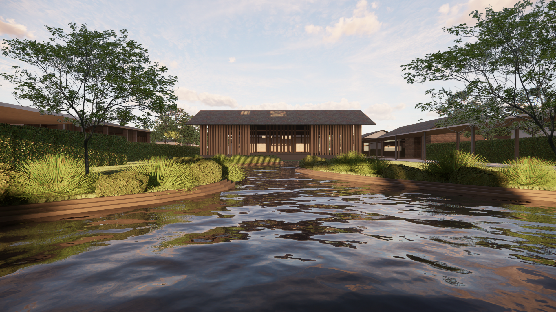 แนวคิดทั้งหมดที่กล่าวมาล้วนเป็นเหตุที่นำมาสู่กระบวนการการจัดวางรูปแบบอาคาร หากมองกันจากมาสเตอร์แปลนแล้วจะเห็นได้ว่าท่ามกลางกลุ่มอาคารหลากหลายคลัสเตอร์ จะมีอยู่หนึ่งโปรแกรมที่ถูกจัดวางไว้ตรงกึ่งกลางของโครงการ ซึ่งหากกล่าวให้เข้าใจกันอย่างง่ายๆ อาคารหลังนี้ก็เปรียบเสมือนโปรแกรมที่สำคัญยิ่งสำหรับผู้ป่วยแทบทุกระดับนั่นเอง เนื่องจากประกอบไปด้วยทั้งโซนสำหรับกิจกรรมบำบัดซึ่งจะมีส่วนสำคัญในการช่วยชะลอการทรุดของโรคเช่นธาราบำบัดหรือการบำบัดด้วยแสง รวมถึงพื้นที่ในส่วนเดย์แคร์ด้วยเช่นกัน และสาเหตุที่แพรวเลือกสร้างไว้ตรงถึงกลางโครงการก็เอื้ออำนวยเพื่อให้ผู้ใช้งานจากทุกคลัสเตอร์เข้าถึงได้โดยง่ายนั่นเอง