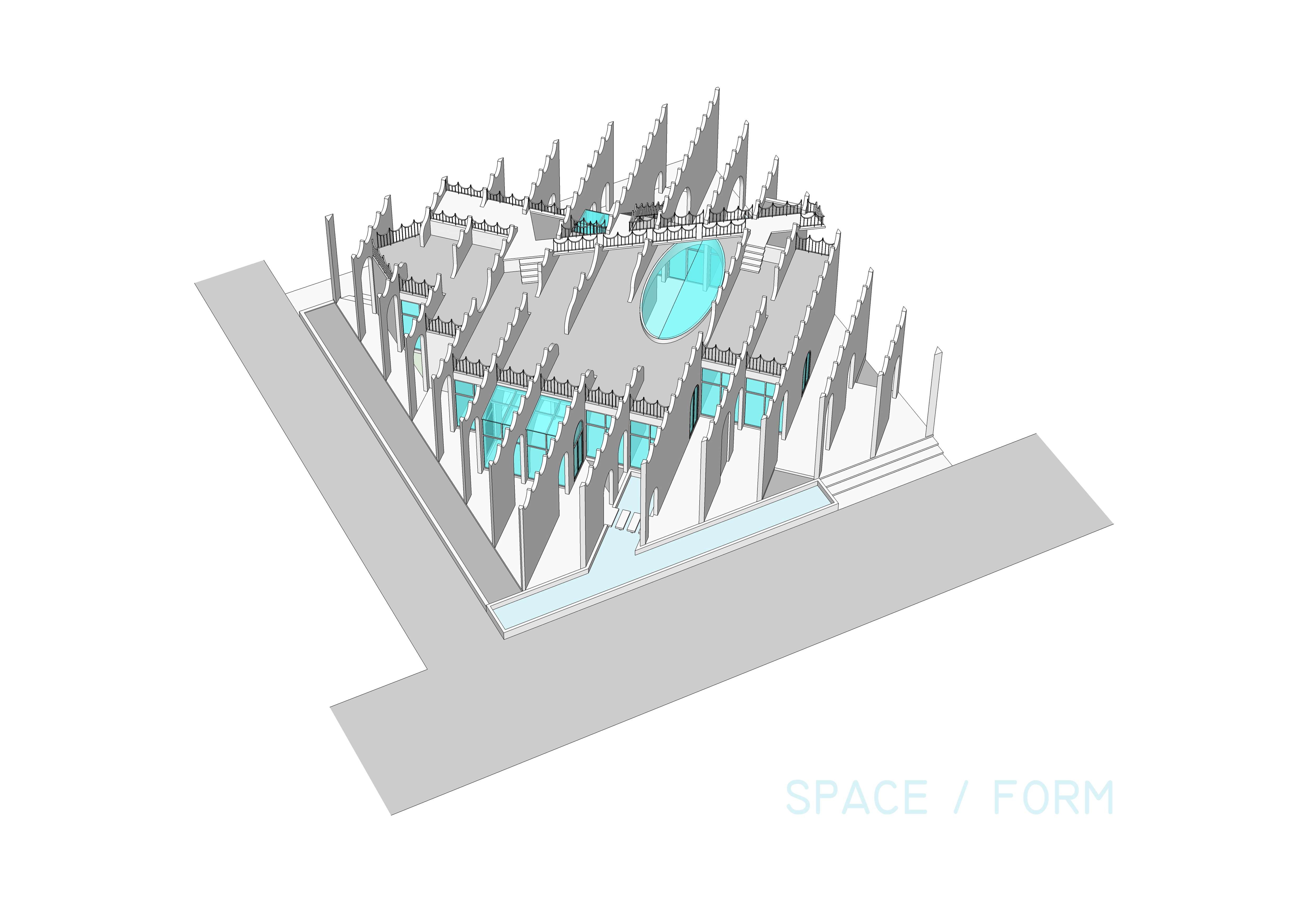 โดยมีเทคนิคการออกแบบฟอร์มและสเปซดังนี้