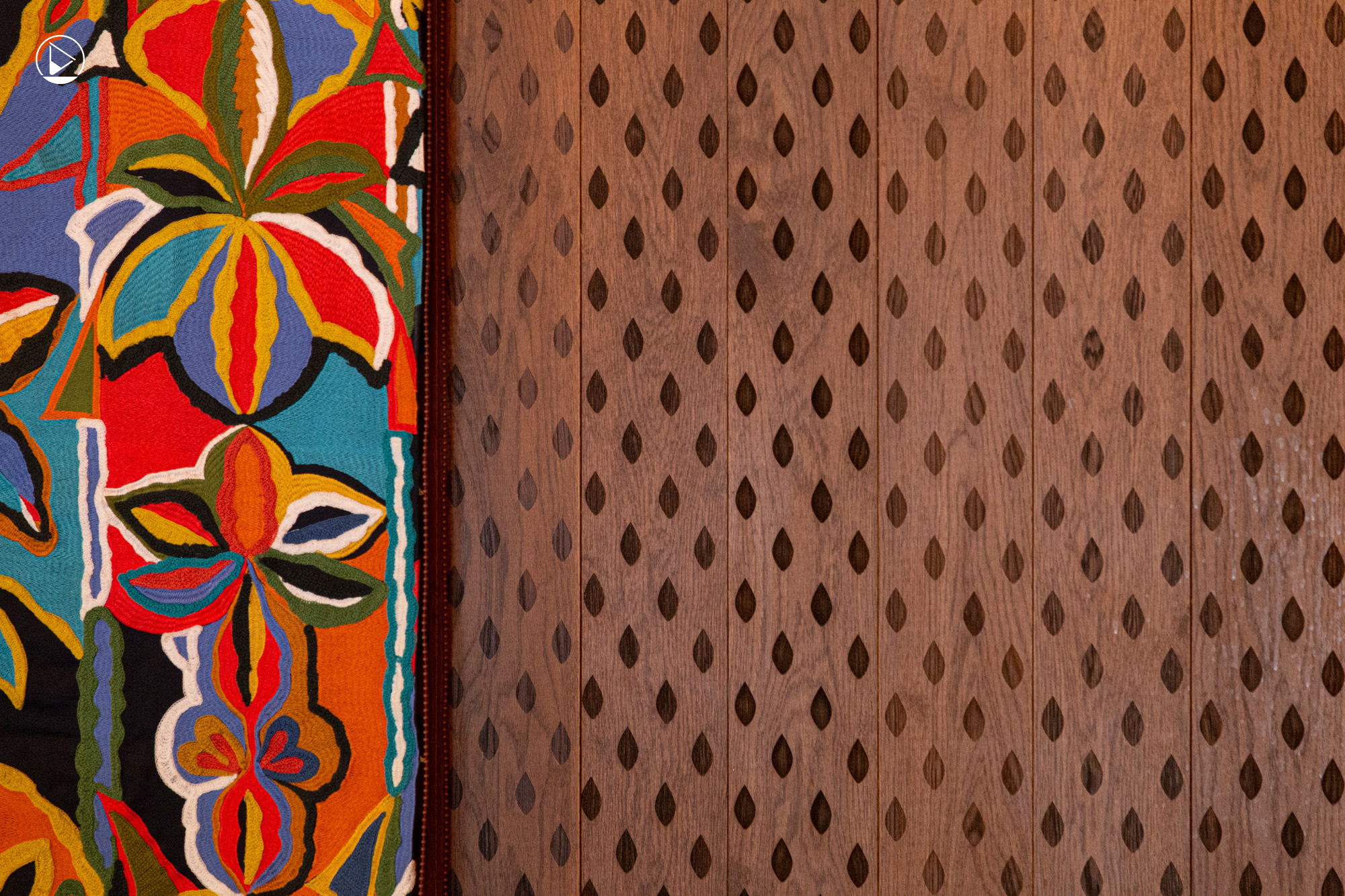 แน่นอนว่าในกรุงเทพฯและประเทศไทย งานหัตถกรรมผ้าไหมเป็นสิ่งที่น่ายกย่องอย่างมาก ดังนั้นเราจึงอยากที่จะใช้ผ้าไหมท้องถิ่นให้มากที่สุดเท่าที่จะทำได้ เราได้กรุผนังด้วยผ้าไหมในลวดลายต่าง ๆ บนพื้นที่ส่วนใหญ่บริเวณชั้นล่าง เราใช้ผลิตภัณฑ์จากผู้ผลิตในท้องถิ่น เช่น Jim Thompson และยังใช้ผ้าที่ถักทอขึ้นมาโดยเฉพาะด้วยมือของช่างไทย คุณจะได้เห็นผนังตกแต่งด้วยผ้าไหมที่มีลวดลายพันธุ์ไม้ในโทนขาวดำ ซึ่งมันเป็นการเชิดชูงานผ้าไหมในประเทศไทยอย่างแท้จริง”