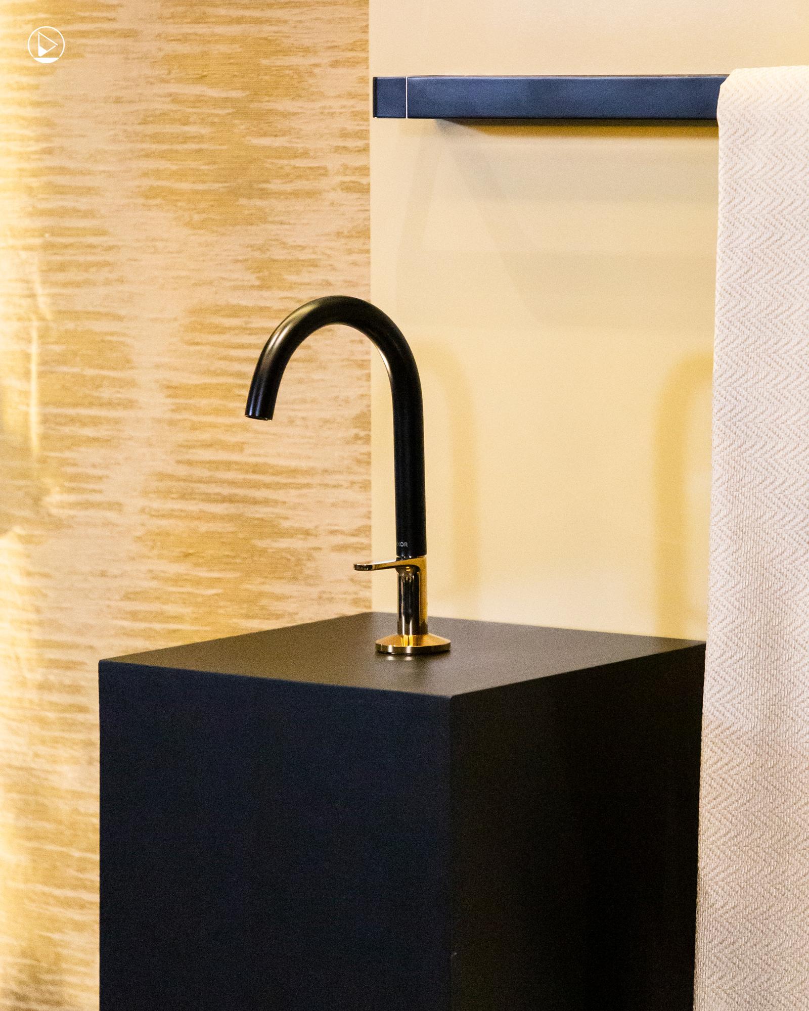 อีกหนึ่งความพิเศษของการออกแบบดิสเพลย์สินค้าภายในงาน คือ การนำเสนอ AXOR One ภายใต้แคมเปญ Bi-color ที่ผสมผสานก้านจับก๊อกน้ำที่มีสีสัน และพื้นผิวที่แตกต่างกันมาจัดแสดงร่วมกัน สร้างจุดตัดที่สวยงามโดดเด่นให้กับห้องน้ำ สอดคล้องไปกับแนวคิดการออกแบบที่เรียบง่าย และทันสมัยของ AXOR One ประกอบกับลวดลายอันประณีตของผ้าทอไทยโทนสีทองอร่าม ช่วยเพิ่มมิติใหม่แห่งความหรูหราได้อย่างมีระดับ