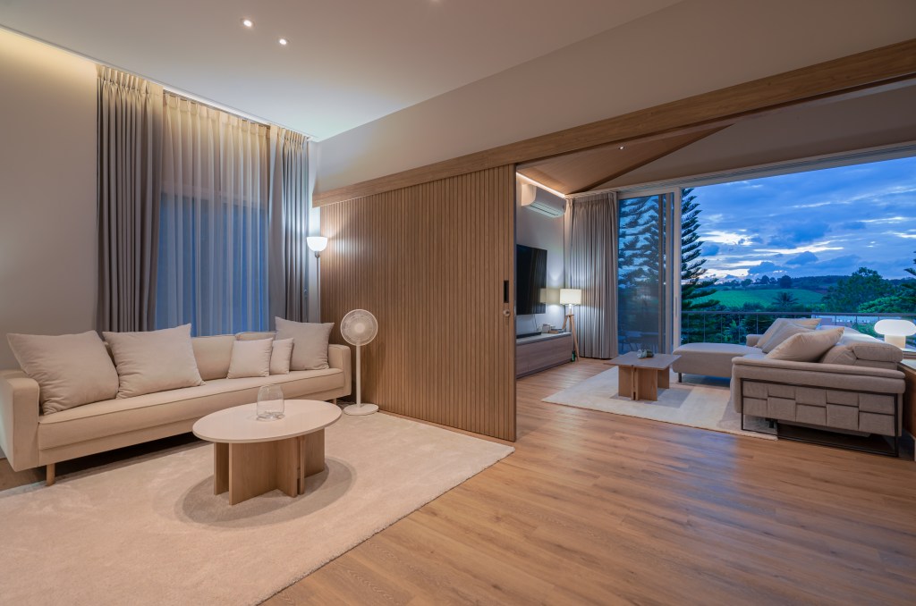 ด้วยตำแหน่งที่ตั้งบนจุดสูงสุดของเนิน บ้านหลังนี้เปิดมุมมองวิวเขาใหญ่แบบเต็มตา พร้อมชานขนาดใหญ่ที่รองรับกิจกรรมหลากหลาย การเลือกวัสดุที่เหมาะสม และการออกแบบที่เน้นความยืดหยุ่น สะท้อนถึงความลงตัวระหว่างดีไซน์และบริบทของพื้นที่