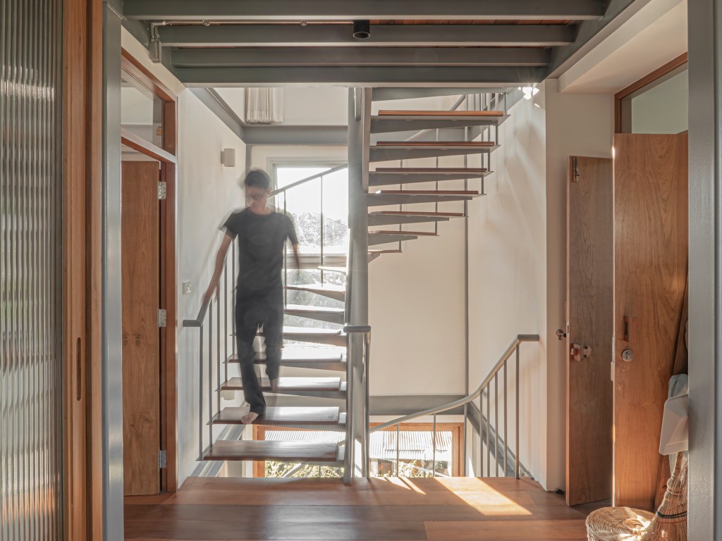 บันไดนี้จึงเป็นมากกว่าทางขึ้นลง แต่เป็นระบบที่เชื่อมต่ออารมณ์ของบ้านตั้งแต่ชั้นล่างถึงชั้นบน