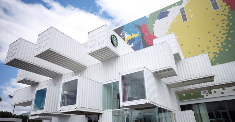 เมื่อ Kengo Kuma ออกแบบ Starbucks แห่งใหม่ ไม่ใช่ไม้แต่เป็น”ตู้คอนเทนเนอร์”